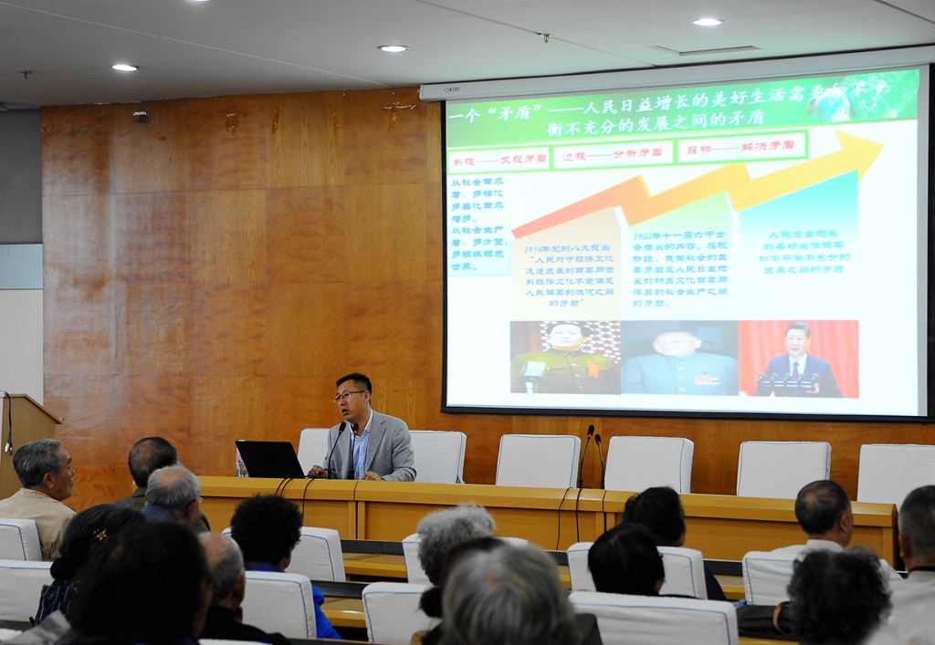 會上,校黨的十九大精神宣講團(tuán)成員、馬克思主義學(xué)院中國近現(xiàn)代史綱要教研部主任、碩士生導(dǎo)師張春波副教授以《“數(shù)”說黨的十九大》為題,從新時代、新矛盾——進(jìn)行偉大斗爭,新理論、新思想——建設(shè)偉大工程,新任務(wù)、新舉措——推進(jìn)偉大事業(yè),新使命、新征程——實現(xiàn)偉大夢想等四個方面闡釋了黨的十九大的“新”。他指出,只有進(jìn)行新的偉大斗爭才能開創(chuàng)新時代,解決新矛盾,只有以馬克思主義中國化最新成果——習(xí)近平新時代中國特色社會主義思想為行動指南,才能建設(shè)新的偉大工程。