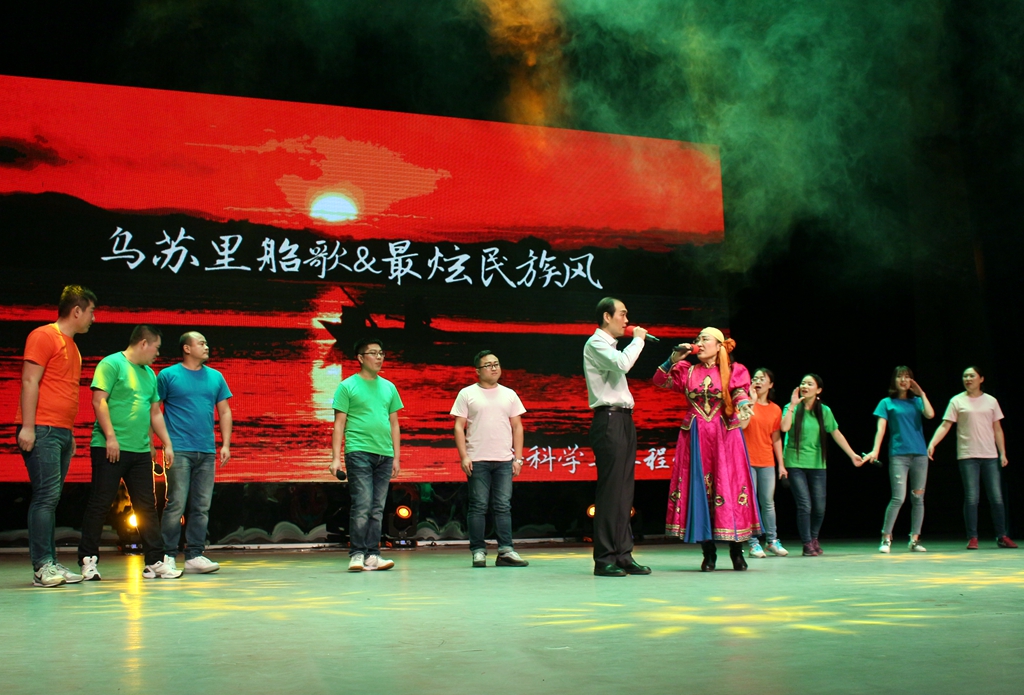 歌曲串燒最能引起觀眾與歌者的共鳴,材料科學(xué)與工程學(xué)院的老師們把《烏蘇里船歌》和《最弦民族風(fēng)》巧妙地結(jié)合在一起,完美的展現(xiàn)出帕米爾皚皚的雪嶺、太平洋浩瀚的煙波、黑龍江荒寒的河岸和海南島郁郁的椰林。