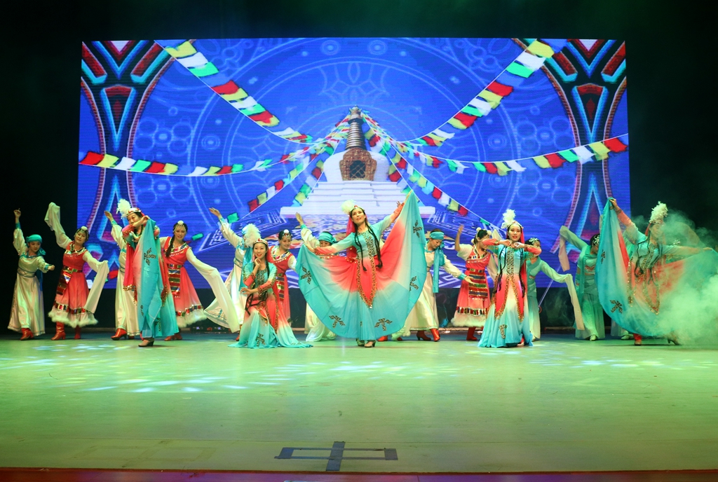 演出在觀眾的熱烈掌聲中拉開帷幕,教職工舞蹈隊(duì)精心準(zhǔn)備了充滿民族特色的開場舞,將不同的民族元素巧妙地融合在一起,漢唐與維吾爾族的服飾相得益彰,蒙古族和藏族奔放的舞姿吸引著臺(tái)下觀眾的眼球。