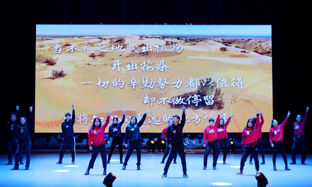 新時(shí)代的中國,共建一帶一路,睦鄰友好,互利共榮,由經(jīng)濟(jì)與管理學(xué)院王宇航、康銘、劉航、潘賀男等人帶來的詩朗誦《逐夢新時(shí)代》抒發(fā)了他們不忘初心、牢記使命,為實(shí)現(xiàn)新時(shí)代的新夢想不懈奮斗的豪情壯志。