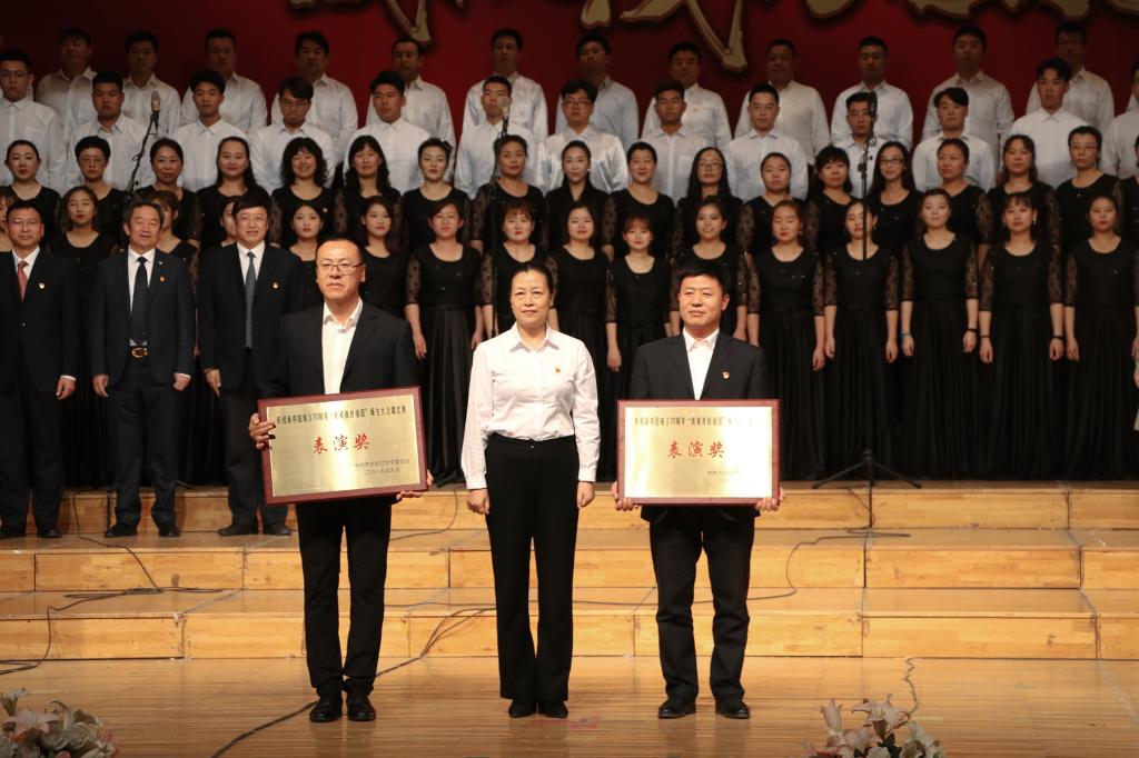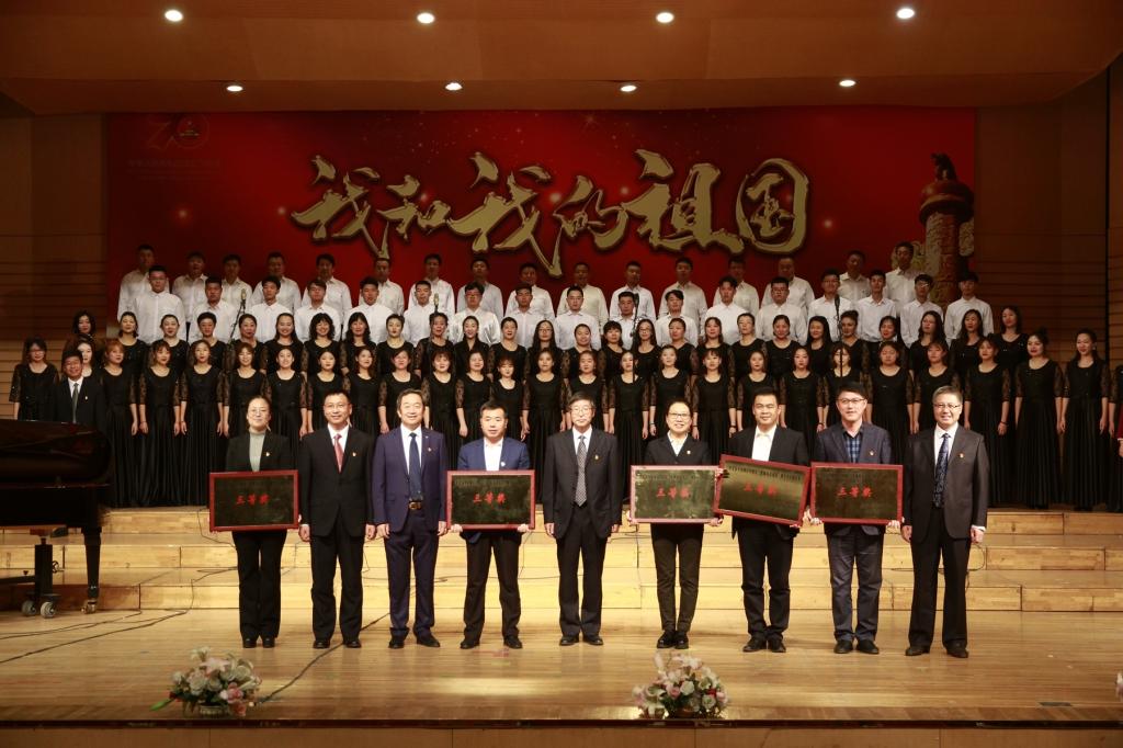 發(fā)布日期:2019-09-25 點(diǎn)擊量:放歌新時(shí)代,筑夢(mèng)新征程。在新中國(guó)70華誕即將來(lái)臨之際,為營(yíng)造團(tuán)結(jié)奮進(jìn)、熱烈喜慶的氛圍,將學(xué)?!安煌跣?、牢記使命”主題教育與慶祝新中國(guó)成立70周年系列活動(dòng)結(jié)合起來(lái)。9月25日,我校在音樂(lè)廳隆重舉行了慶祝新中國(guó)成立70周年“我和我的祖國(guó)”師生大合唱比賽。校領(lǐng)導(dǎo)陳桂芝、齊宏偉、張文治、王剛、李英杰、姜國(guó)慶、張樹軍、呂厚均、陶佰睿,黨委常委、宣傳統(tǒng)戰(zhàn)部長(zhǎng)王曉梅,黨委常委、組織部長(zhǎng)馬文輝出席活動(dòng)并為獲獎(jiǎng)單位頒獎(jiǎng)。