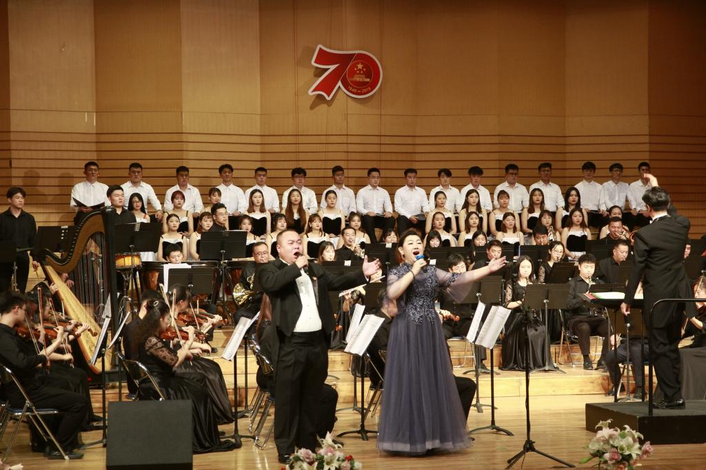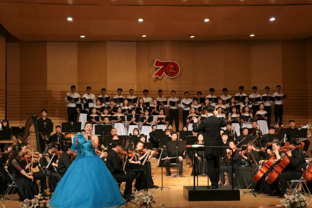 奏響時代樂章,歌唱盛世中國。為熱烈慶祝中華人民共和國成立70周年,9月29日下午,學校在音樂廳隆重舉行了慶祝新中國成立70周年交響音樂會。