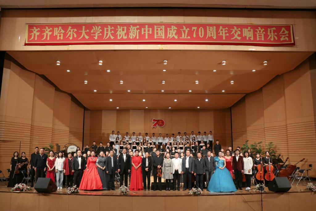 此次交響音樂會是學校為貫徹落實中央關于圍繞慶祝新中國成立70周年深入開展群眾性愛國主義教育活動精神舉辦的系列活動之一,在新祖國70華誕即將到來之時,在“不忘初心、牢記使命”主題教育深入開展之際,交響音樂會的成功舉辦既豐富了主題教育的形式與內容,又讓在場黨員領導干部接受了一次精神上的洗禮。不僅表達了齊大人對偉大祖國的衷心依戀和真誠祝福,更激發(fā)了齊大師生的愛國之情、報國之志。大家一致表示,將緊密團結在以習近平同志為核心的黨中央周圍,深入學習貫徹習近平新時代中國特色社會主義思想,深入學習全國、全省思想政治教育工作會議精神,扎實推進“不忘初心、牢記使命”主題教育,全面落實校第二次黨代會各項任務,為實現中華民族偉大復興的中國夢,為建設有特色地方高水平應用型綜合大學不斷貢獻新力量,以更加昂揚的斗志、更加優(yōu)異的成績?yōu)樾轮袊闪?0周年獻禮。