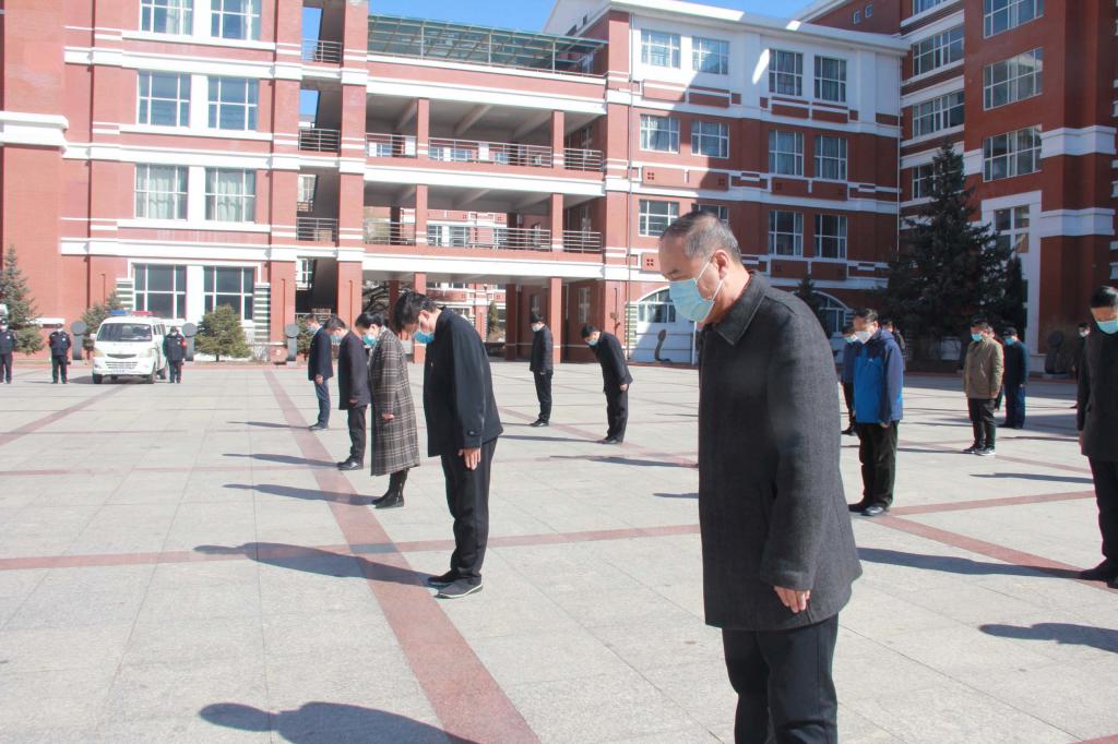 為深切表達全校師生對抗擊新冠肺炎疫情斗爭犧牲烈士和逝世同胞的深切哀悼,4月4日上午10時,我校在中區(qū)廣場舉行了哀悼活動,校黨委書記、校長陳桂芝、校黨委副書記張文治、副校長王剛、副校長李英杰、工會主席陶佰睿及工作人員等來到中區(qū)廣場,集體向新冠肺炎疫情犧牲烈士和逝世同胞默哀。