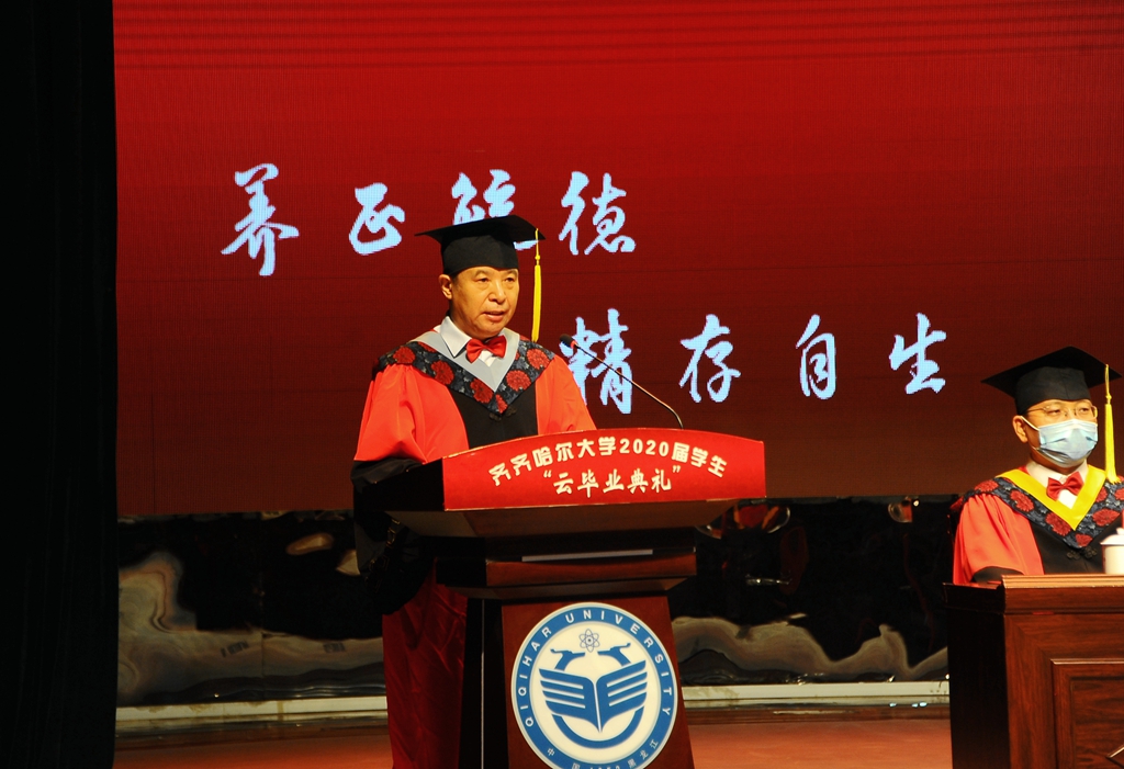 陳桂芝最后說(shuō),“衷心祝福齊齊哈爾大學(xué)2020屆全體畢業(yè)生,前程似錦,幸??鞓?lè),一生平安!”