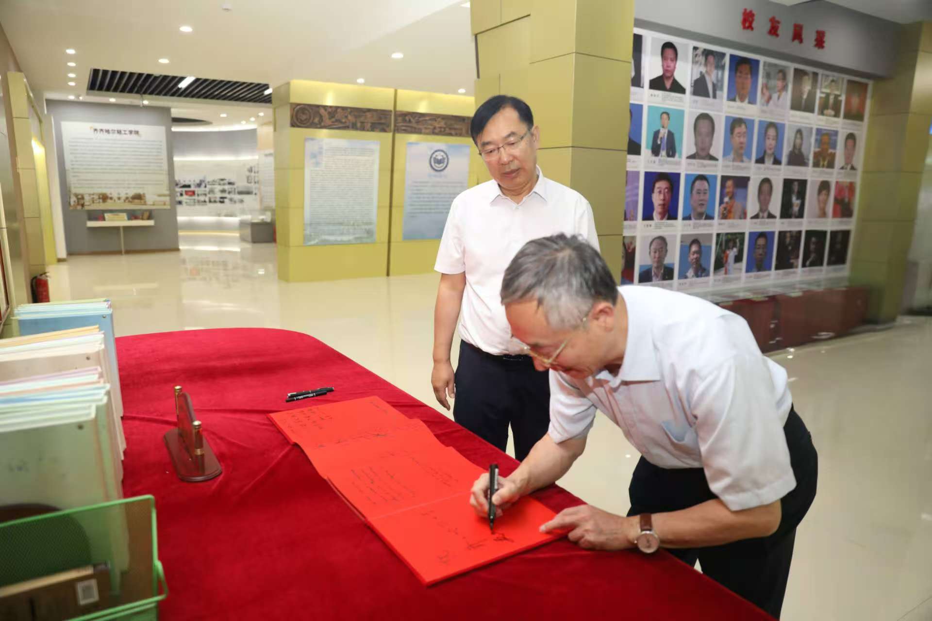 報告會后,閔維方教授在郝文斌陪同下參觀了我校校史館,深入了解學(xué)校辦學(xué)歷史與發(fā)展成就,并在大學(xué)題名簿上留言和簽名。