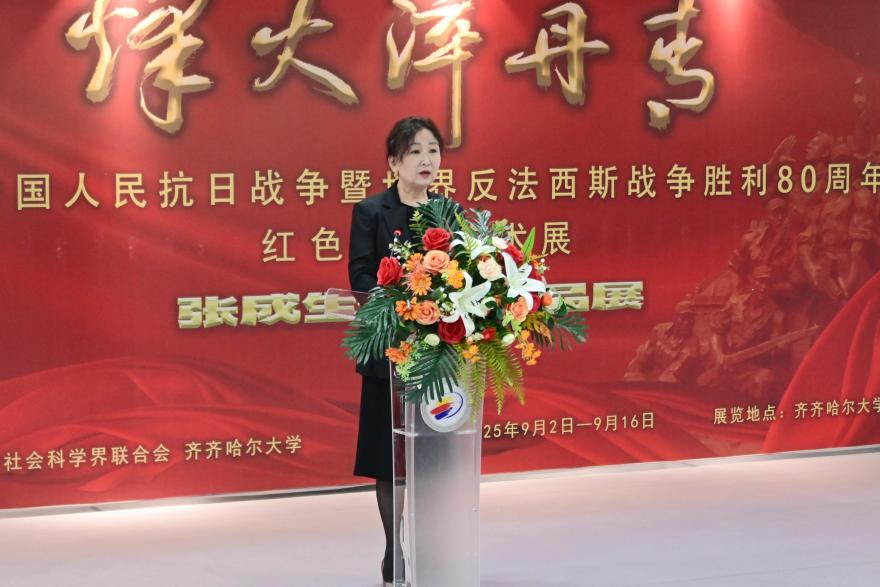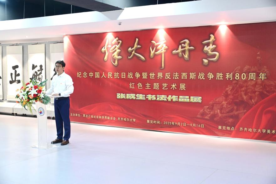 黨委書記丁宏代表學校向張成生先生致以崇高的敬意!她表示,歷史是最好的教科書,也是最好的清醒劑。唯有銘記苦難輝煌,方能扛起復興重任。作為扎根黑土地、傳承武裝抗日第一槍歷史、肩負文化自信自強重任的綜合性大學,我們在這個莊嚴的日子舉辦紅色主題書法展,旨在通過藝術的視角重述抗戰(zhàn)史詩、詮釋抗戰(zhàn)精神,讓師生們在欣賞藝術之美、文化之韻的同時,重溫民族記憶、緬懷革命先烈、砥礪家國情懷,這不僅是一次不忘來路的深情回望,更是一次啟迪未來的鄭重前瞻。希望本次展覽能夠以生動的文化實踐,為師生上一堂觸及靈魂的“大思政課”,在歷史教育和精神洗禮中,以文化鑄魂,以行動踐行,在傳承中尋求突破,在奮斗中實現(xiàn)成長,努力成為優(yōu)秀的文化傳承者和合格的時代答卷人。