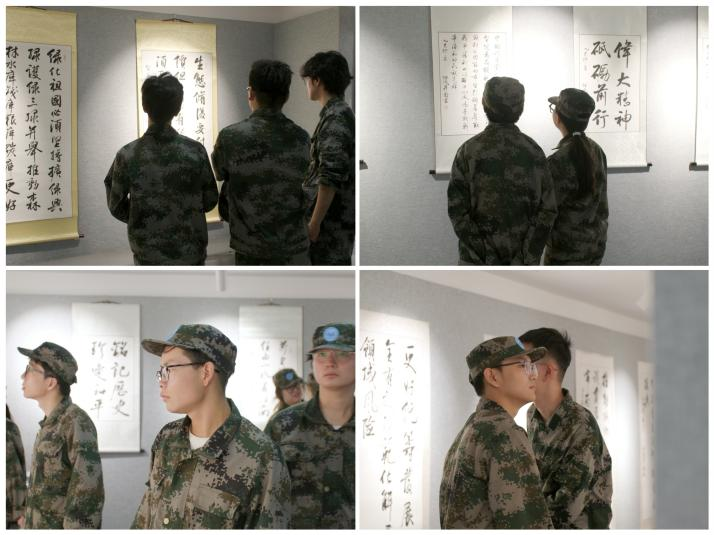 開幕式后,師生們共同參觀展覽。同學們深受觸動,紛紛表示,欣賞張成生先生的作品,如同上了一堂感人至深的愛國主義教育課,將以張成生先生作品中深厚的家國情懷為激勵,樹立報國強國的遠大志向,勇做挺膺擔當?shù)膴^斗者,守護好中華民族生存與發(fā)展的精神支柱,將革命先輩開創(chuàng)的偉大事業(yè)不斷推向前進!