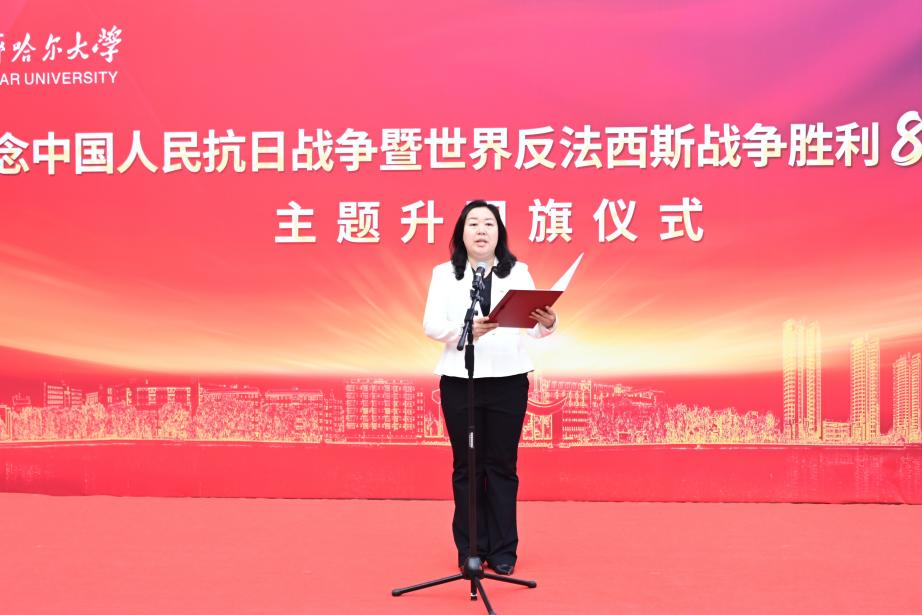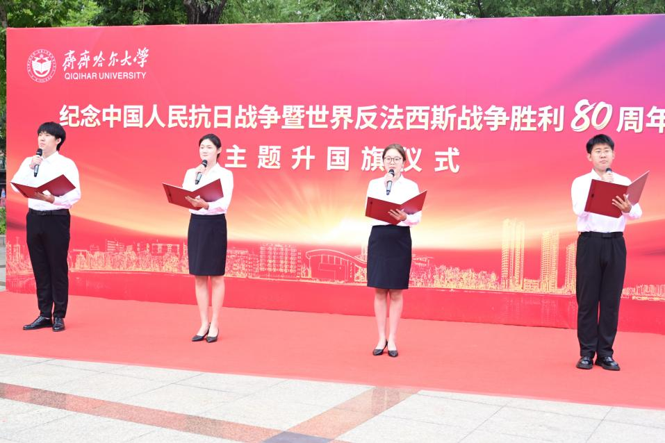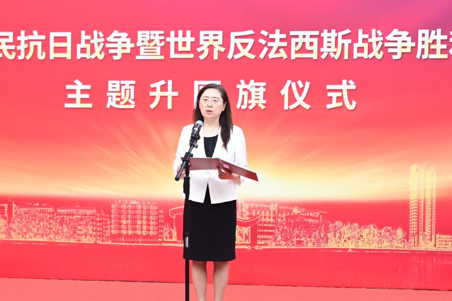 校黨委書記丁宏以“銘記歷史守初心 薪火相傳啟新程”為題,主講“國旗下的開學第一課”。她指出,五星紅旗是先烈熱血染就的信仰火炬,昭示著以天下興亡匹夫有責的愛國情懷、視死如歸寧死不屈的民族氣節(jié)、不畏強暴血戰(zhàn)到底的英雄氣概、百折不撓、堅忍不拔的必勝信念為核心的偉大抗戰(zhàn)精神,這份精神是激勵我們前行的永恒動力。她強調(diào),齊大73載辦學歷程鐫刻著從“艱苦奮斗”到“守正創(chuàng)新”、從“奉獻邊疆”到“引領未來”的紅色基因,這是青年成長的堅實根基。她對廣大齊大學子提出三點期望:一是當以根鑄魂,永葆赤子之心。從校史中延安精神鑄就的辦學底色汲取力量,傳承“越是艱險越向前”的堅韌意志。二是當以行踐諾,深植家國情懷。學習身邊榜樣,將愛國情懷轉(zhuǎn)化為“關(guān)鍵時刻站得出、平凡崗位干出彩”的實際行動,用青春奉獻告慰先烈,踐行“強國有我”誓言。三是當以責聚力,共赴時代之約。把握學校迎接教育部本科教育教學審核評估、建設國內(nèi)一流應用型綜合性大學的發(fā)展關(guān)鍵期,樹牢“校榮我榮”意識,主動投身教學科研、產(chǎn)教融合、校園建設,在班級、社團、實踐中勇當先鋒,讓個人成長與學校發(fā)展、民族復興同頻共振。和平是先輩用鮮血換來的尊嚴,紀念歷史貴在奮進。她號召,全體師生要讓愛國主義的火炬照亮新征程,以實際行動奮力譜寫無愧于時代、無愧于人民、無愧于歷史的齊大新篇章!