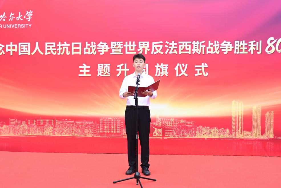 9月3日,學校在中區(qū)廣場舉行紀念中國人民抗日戰(zhàn)爭暨世界反法西斯戰(zhàn)爭勝利80周年主題升國旗儀式。學校領導班子成員,各職能部門負責同志,各學院師生代表參加了此次活動。