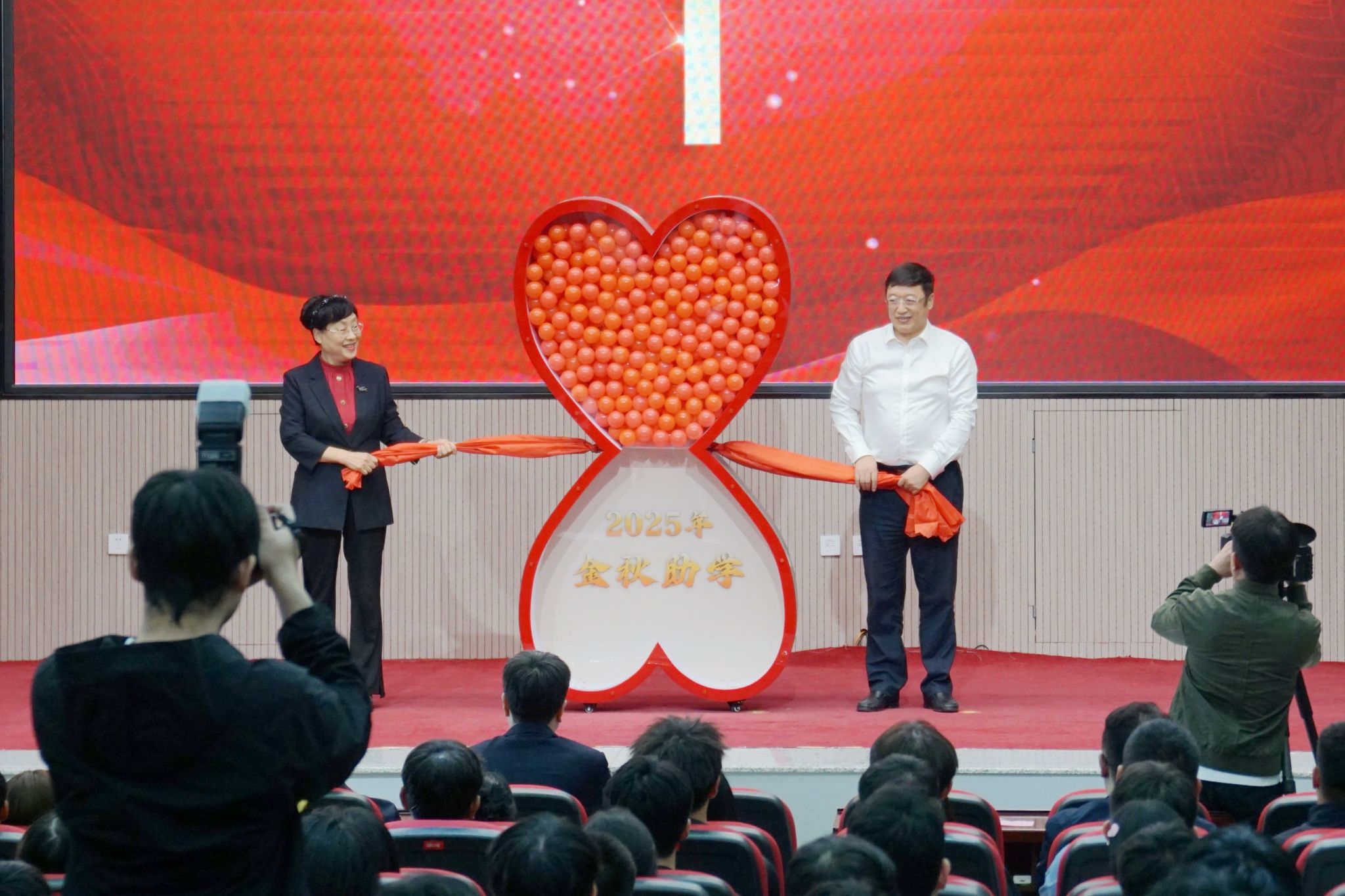 伴隨專(zhuān)題片《青春筑夢(mèng)?愛(ài)心護(hù)航》的溫情播放,儀式拉開(kāi)序幕。在獎(jiǎng)學(xué)金發(fā)放環(huán)節(jié),出席儀式的領(lǐng)導(dǎo)將“金秋助學(xué)”獎(jiǎng)學(xué)金,逐一遞至18名受助學(xué)生代表手中,并合影留念,定格暖心瞬間。