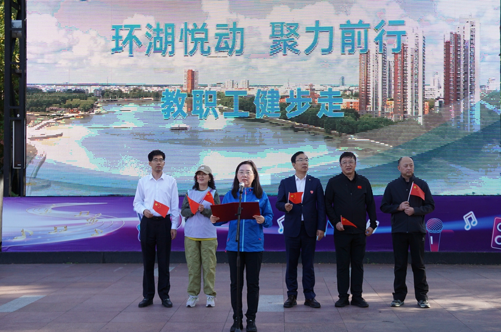 校黨委書記丁宏在致辭時代表學(xué)校向辛勤耕耘在教學(xué)、科研、管理服務(wù)一線的全體教職工致以誠摯問候。她指出,學(xué)校環(huán)勞動湖而建,“環(huán)湖大學(xué)”的美譽深入人心。教職工環(huán)湖健步走活動作為學(xué)校的特色品牌活動,既體現(xiàn)了學(xué)校對教職工身心健康的關(guān)心關(guān)愛,也展現(xiàn)了齊大人團結(jié)奮進的精神風(fēng)貌。當(dāng)前學(xué)校正處于教育教學(xué)審核評估的關(guān)鍵時期,面臨著服務(wù)龍江全面振興、推進學(xué)科建設(shè)、提升育人質(zhì)量的新任務(wù)新挑戰(zhàn)。希望全體教職工把徒步中收獲的活力與激情,轉(zhuǎn)化為教書育人、干事創(chuàng)業(yè)的動力;把活動中凝聚的團結(jié)與共識,轉(zhuǎn)化為推動學(xué)校發(fā)展的強大合力。