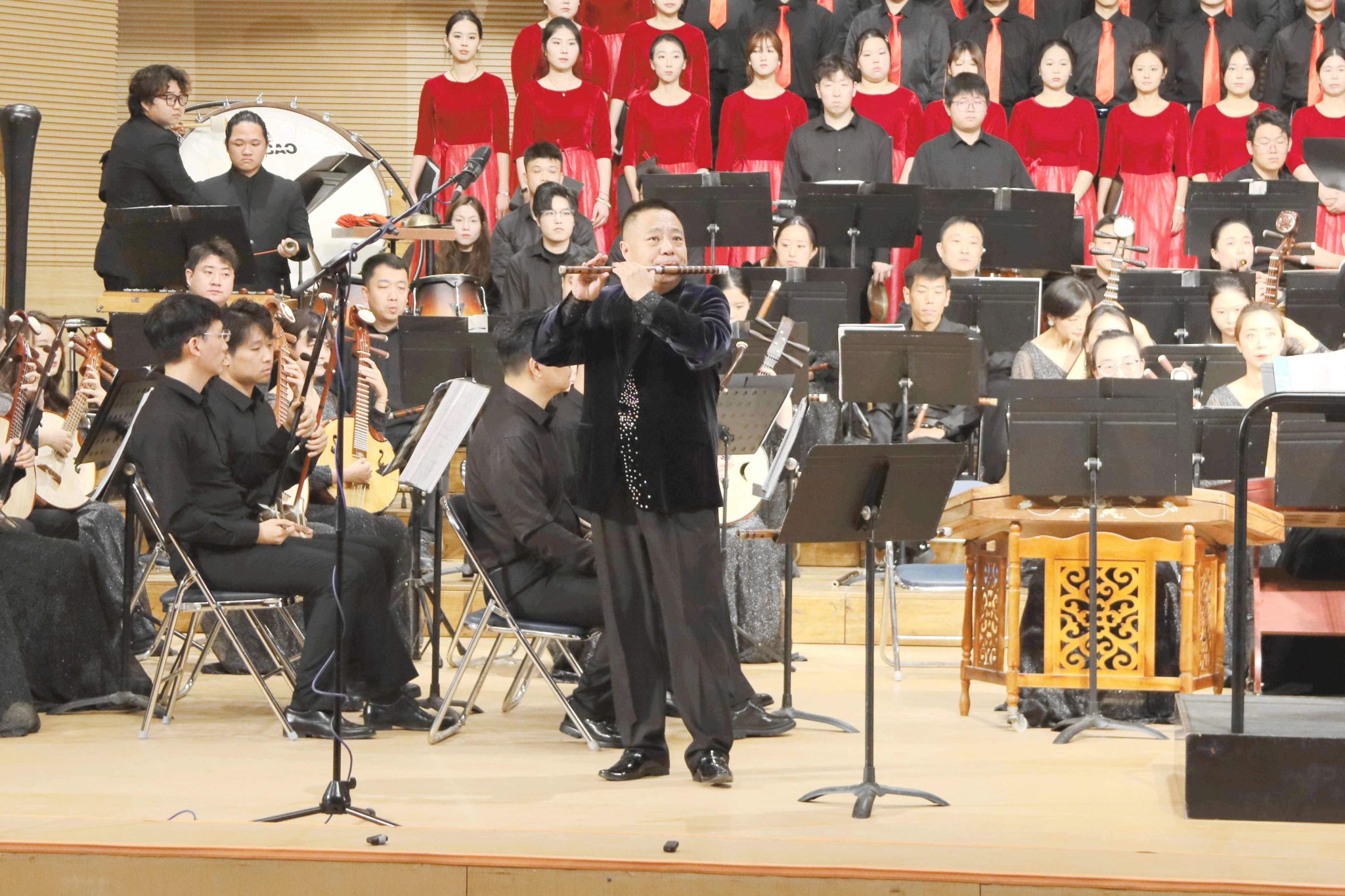 竹笛協(xié)奏曲《陜北四章》第四樂章《鬧紅火》,將陜北地區(qū)熱烈民風(fēng)與昂揚(yáng)精神充分展現(xiàn),民族音樂感染力穿透全場。