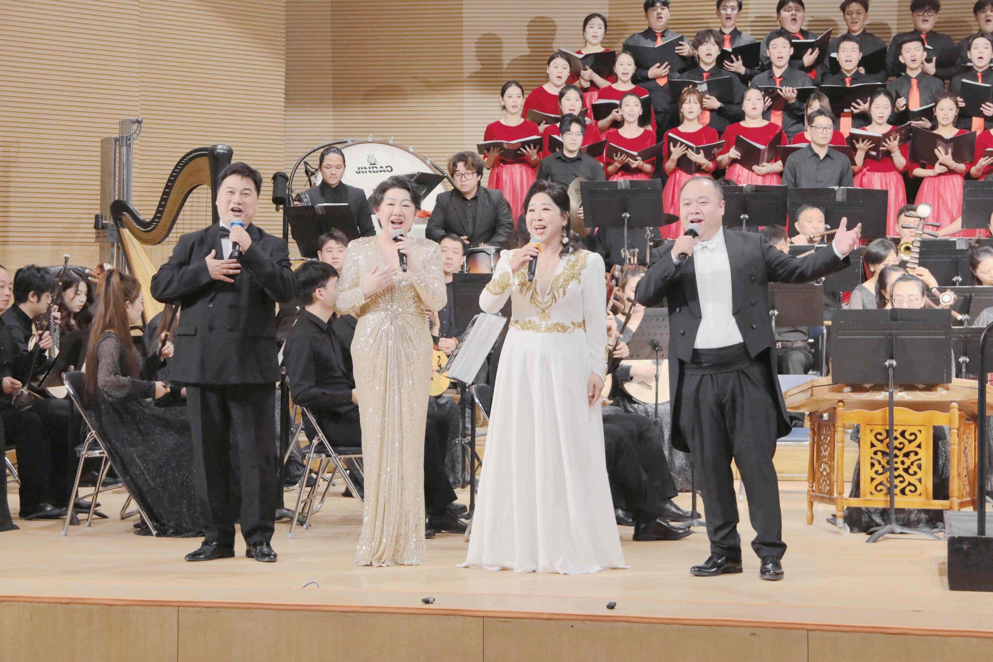 男女聲四重唱《二十年后再相會》,以熟悉曲調(diào)呼應(yīng)“廿載華音”主題,“再過二十年,我們來相會” 的歌詞不僅是對樂團(tuán)過往的回望,更飽含對未來民族音樂傳承的期許。音樂會在民族管弦樂《我的祖國》中落下帷幕。