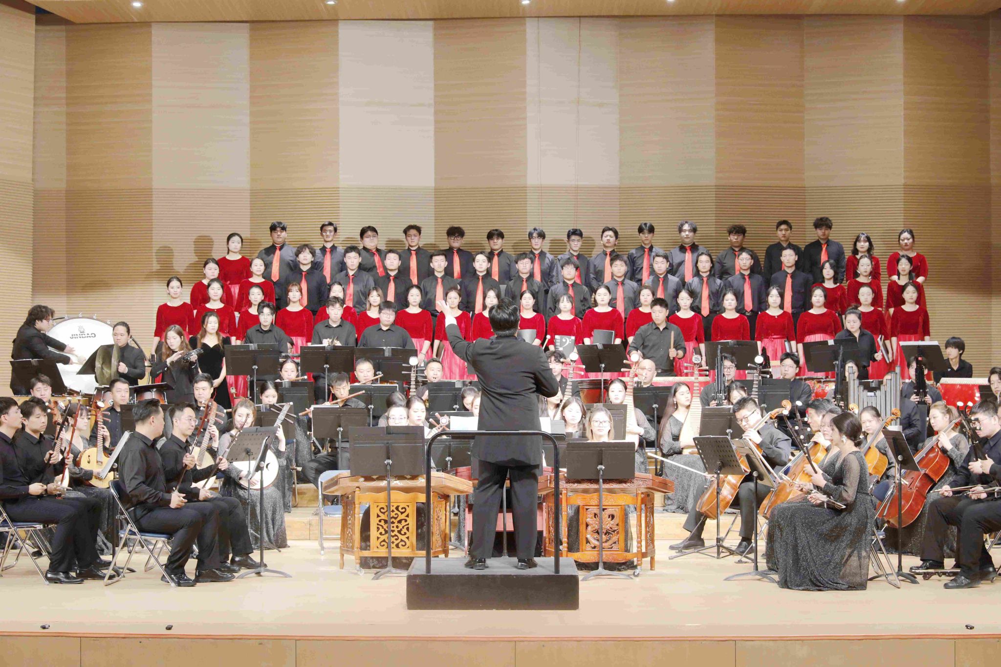 廿載砥礪深耕,今朝弦歌不輟。為深入學(xué)習(xí)貫徹習(xí)近平文化思想,進(jìn)一步弘揚(yáng)中華優(yōu)秀傳統(tǒng)文化,推進(jìn)德育美育融合發(fā)展,充分展現(xiàn)學(xué)校文化育人工作豐碩成果,10月23日晚,由校黨委宣傳部主辦、音樂與舞蹈學(xué)院承辦的“廿載華音·薪火相傳”齊齊哈爾大學(xué)民族樂團(tuán)建團(tuán)20周年音樂會在學(xué)校音樂廳舉行。這場承載著二十年歲月沉淀的藝術(shù)盛宴,以高水平藝術(shù)實(shí)踐詮釋了學(xué)校踐行“為黨育人、為國育才”的初心使命。