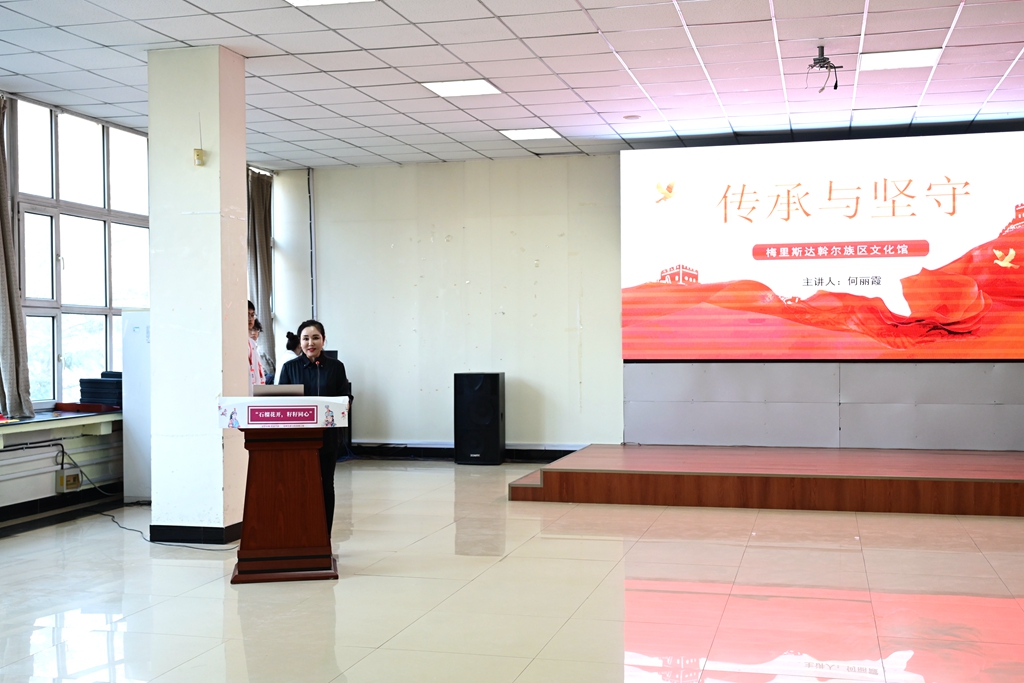 全國民族團結(jié)進步模范個人、梅里斯達斡爾族區(qū)文化館館長何麗霞帶來“傳承與堅守”主題微課,深入淺出地為現(xiàn)場觀眾解讀達斡爾族文化的精神內(nèi)核與時代價值。隨后由中小學(xué)生代表進行“我眼中的達斡爾”主題成果展示分享,展現(xiàn)了當代青少年視角下的民族文化認知。