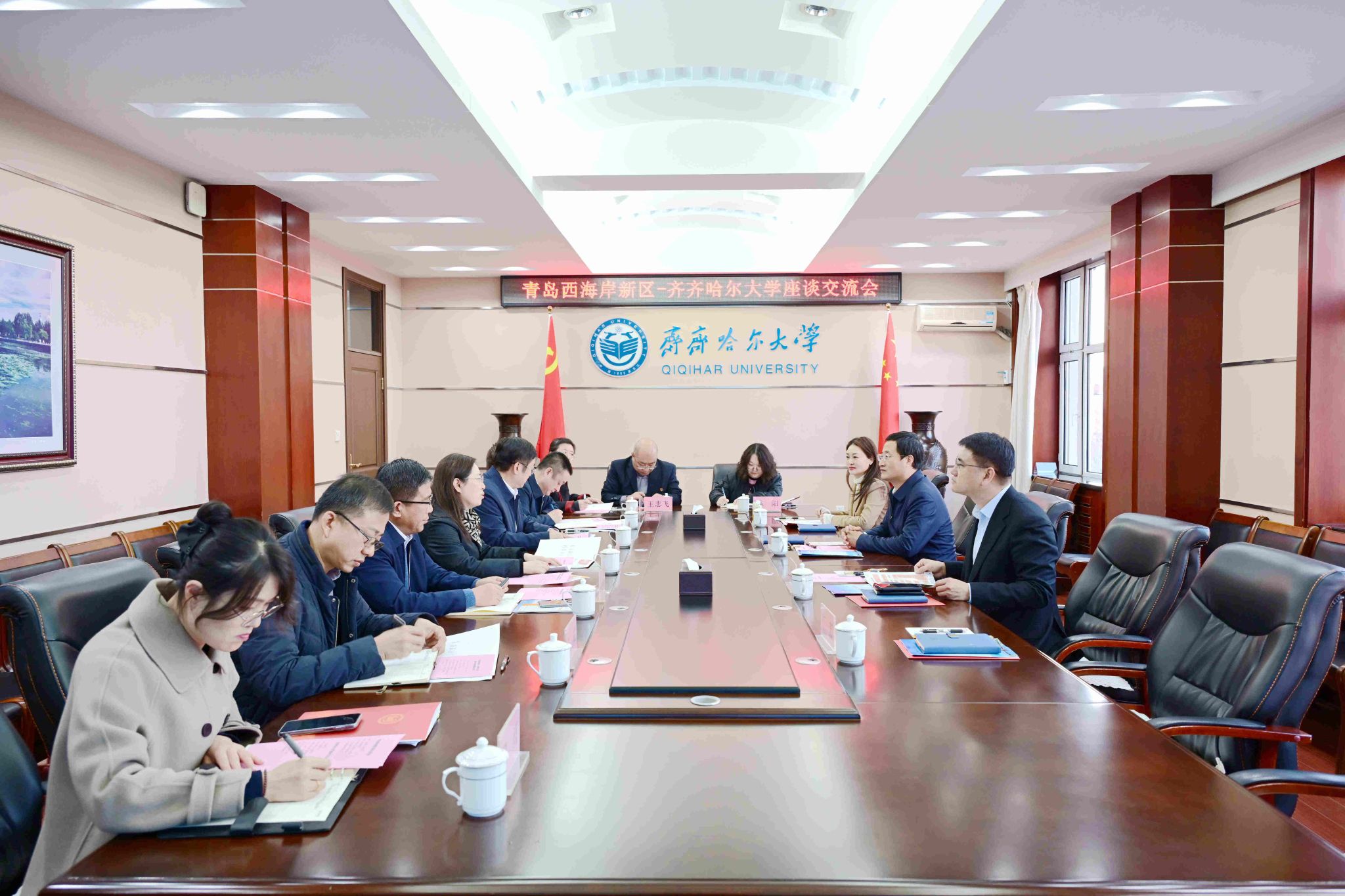 丁宏代表學(xué)校對(duì)劉陸瑩一行來(lái)校調(diào)研交流表示歡迎,向調(diào)研組介紹了學(xué)校整體情況和辦學(xué)特色,回顧了學(xué)校與山東省各地市的交流合作歷史。就進(jìn)一步拓展校地合作,丁宏指出,學(xué)校的學(xué)科專業(yè)設(shè)置與西海岸新區(qū)的產(chǎn)業(yè)發(fā)展需求高度適配,西海岸新區(qū)人才集聚效應(yīng)為雙方合作提供了廣闊空間,希望雙方共同努力,盡快找到合作契合點(diǎn),開(kāi)創(chuàng)人才引進(jìn)、產(chǎn)教融合互利共贏新局面。劉陸瑩充分肯定了近年來(lái)學(xué)校在人才培養(yǎng)、科研創(chuàng)新和科技成果轉(zhuǎn)化方面取得的突出成效,詳細(xì)介紹了青島西海岸新區(qū)區(qū)情、產(chǎn)業(yè)情況、人才政策等,希望學(xué)校近期派員到新區(qū)考察調(diào)研,推進(jìn)合作意向落地見(jiàn)效,同時(shí)將組織區(qū)內(nèi)企業(yè)到校招聘畢業(yè)生,推進(jìn)校政企深度合作。