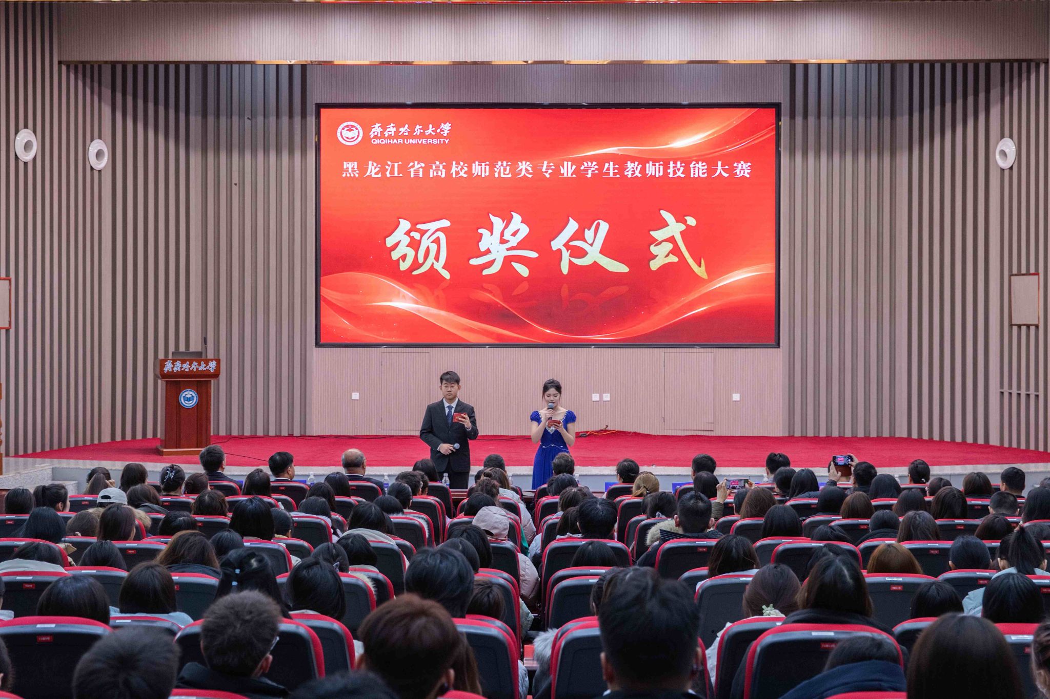 為進(jìn)一步提升師范類專業(yè)學(xué)生教學(xué)能力,搭建“以賽促學(xué)、以賽促教、以賽促研”的交流平臺(tái),培養(yǎng)有理想信念、有道德情操、有扎實(shí)學(xué)識(shí)、有仁愛之心的“四有”好老師,11月14日至16日,黑龍江省高校師范類專業(yè)學(xué)生教師技能大賽在我校舉行。大賽由省教育廳高教處、高校創(chuàng)新創(chuàng)業(yè)教育指導(dǎo)委員會(huì)主辦,齊齊哈爾大學(xué)組織,教師教育學(xué)院承辦,吸引了全省13所高校的100余名師生參與。