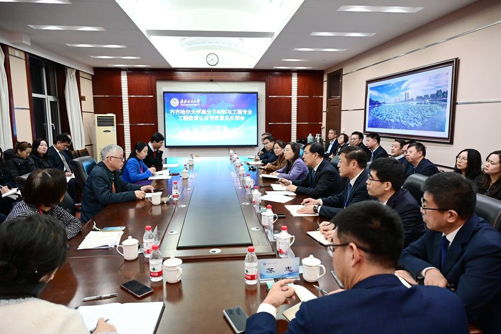 校長(zhǎng)郝文斌代表學(xué)校對(duì)專家組的悉心指導(dǎo)和辛勤付出表示衷心感謝,并作表態(tài)發(fā)言。他指出,專家組的意見精準(zhǔn)深刻、中肯客觀,為學(xué)校深化工科專業(yè)內(nèi)涵建設(shè)、提升工程教育質(zhì)量指明了方向。學(xué)校對(duì)專家組反饋的意見和建議誠(chéng)懇接受、照單全收、堅(jiān)決整改、全面落實(shí),下一步將主要從以下三個(gè)方面抓實(shí)落靠。一是加強(qiáng)組織領(lǐng)導(dǎo),全面壓實(shí)認(rèn)證整改責(zé)任。學(xué)校將立即成立整改工作領(lǐng)導(dǎo)小組,統(tǒng)籌推進(jìn)高分子材料與工程專業(yè)認(rèn)證整改工作,列出工作臺(tái)賬,建立“問題清單、任務(wù)清單、責(zé)任清單、時(shí)限清單”,形成“學(xué)校統(tǒng)籌、部門協(xié)同、學(xué)院主抓、專業(yè)落實(shí)”四級(jí)責(zé)任鏈條,確保各項(xiàng)整改工作落地見效。二是堅(jiān)持問題導(dǎo)向,落實(shí)落靠整改工作任務(wù)。學(xué)校將認(rèn)真整改工作納入學(xué)校重點(diǎn)日程,對(duì)照工程教育專業(yè)認(rèn)證標(biāo)準(zhǔn),深化人才培養(yǎng)改革,優(yōu)化師資隊(duì)伍建設(shè),強(qiáng)化生產(chǎn)實(shí)習(xí)、畢業(yè)實(shí)習(xí)等實(shí)踐環(huán)節(jié)保障,健全質(zhì)量保障體系,以務(wù)實(shí)舉措推動(dòng)專業(yè)建設(shè)提質(zhì)增效。三是以認(rèn)證為契機(jī),全面加強(qiáng)學(xué)校工科專業(yè)建設(shè)。學(xué)校進(jìn)一步深化工程教育理念,運(yùn)用人工智能賦能人才培養(yǎng)模式改革、課程體系優(yōu)化、實(shí)踐教學(xué)創(chuàng)新,以認(rèn)證促改革、以認(rèn)證促創(chuàng)新、以認(rèn)證促建設(shè),帶動(dòng)學(xué)校工科專業(yè)整體發(fā)展。同時(shí),緊扣黑龍江省及齊齊哈爾市裝備制造、新材料等重點(diǎn)產(chǎn)業(yè)需求,加大產(chǎn)教融合、科教融匯,共建一批校企聯(lián)合實(shí)驗(yàn)室、實(shí)習(xí)實(shí)訓(xùn)基地,為區(qū)域經(jīng)濟(jì)社會(huì)高質(zhì)量發(fā)展培養(yǎng)更多學(xué)以致用、會(huì)學(xué)善用的高素質(zhì)應(yīng)用型人才。