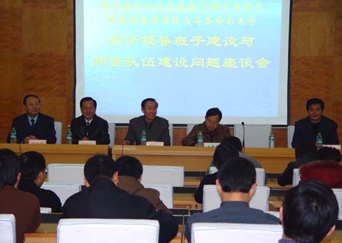 接著,唱校長(zhǎng)從學(xué)校基本情況、學(xué)校近年來(lái)改革發(fā)展建設(shè)、發(fā)展規(guī)劃等方面介紹了學(xué)校概況;從堅(jiān)持把學(xué)校實(shí)踐“三個(gè)代表”重要思想放在領(lǐng)導(dǎo)班子思想政治建設(shè)的首位,把進(jìn)一步提高領(lǐng)導(dǎo)班子的思想政治素質(zhì)、堅(jiān)持把執(zhí)政能力建設(shè)作為領(lǐng)導(dǎo)班子思想政治建設(shè)的重要課題,進(jìn)一步適應(yīng)學(xué)校改革發(fā)展的需要、堅(jiān)持把貫徹民主集中制,完善黨委領(lǐng)導(dǎo)下的校長(zhǎng)負(fù)責(zé)制作為高校領(lǐng)導(dǎo)班子思想政治建設(shè)的重要內(nèi)容,進(jìn)一步增強(qiáng)凝聚力和戰(zhàn)斗力,堅(jiān)持思想政治建設(shè)與組織建設(shè)、作風(fēng)建設(shè)的有機(jī)結(jié)合,進(jìn)一步增強(qiáng)領(lǐng)導(dǎo)班子整體功能等四方面詳細(xì)地介紹了學(xué)校領(lǐng)導(dǎo)班子建設(shè)情況;從我校師資隊(duì)伍的現(xiàn)狀、以深化人事與分配制度改革為動(dòng)力,調(diào)動(dòng)廣大教師積極性、以教書(shū)育人為切入點(diǎn),提高教師思想政治素質(zhì)、以苦練內(nèi)功為要求,促進(jìn)教師不斷提高業(yè)務(wù)水平、師資隊(duì)伍建設(shè)方面存在的問(wèn)題等方面介紹了關(guān)于師資隊(duì)伍建設(shè)情況。唱校長(zhǎng)最后說(shuō),衷心希望國(guó)家教育行政學(xué)院的各位領(lǐng)導(dǎo)和兄弟院校的各位同仁對(duì)我們的工作提出寶貴的意見(jiàn)和建議;同時(shí),也真誠(chéng)地歡迎各位朋友有機(jī)會(huì)再來(lái)齊齊哈爾大學(xué)做客!