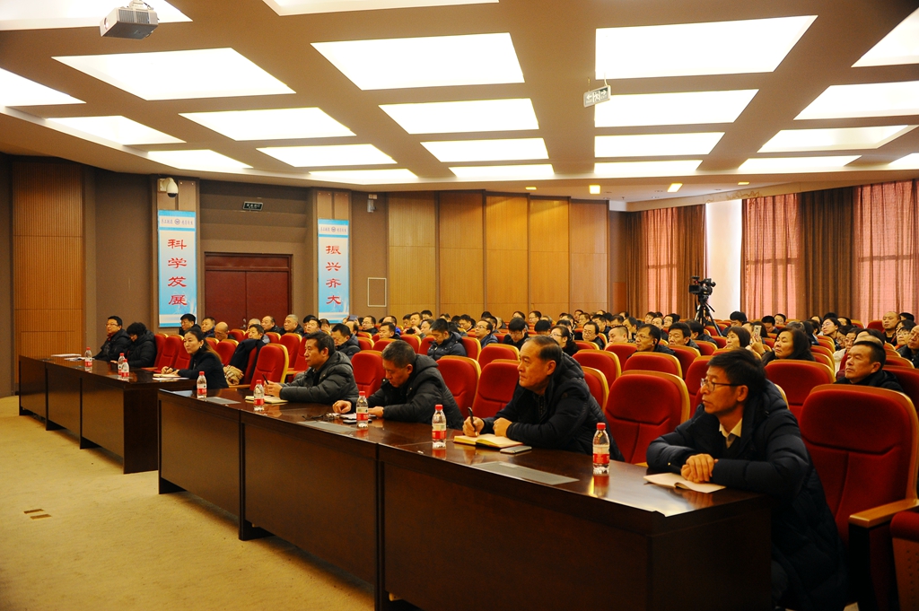 11月23日上午,學校在德潤大廈四樓會議室召開校黨委理論中心組學習(擴大)會議,邀請省委宣講團成員、省委黨校(省行政學院)副校(院)長周英東來我校作黨的十九大精神輔導報告。校黨委副書記齊宏偉、副校長王剛、副校長李英杰、紀委書記姜國慶、副校長張樹軍出席會議,全校副處級以上領導干部、馬克思主義學院相關教師參加了會議。會議由齊宏偉主持。