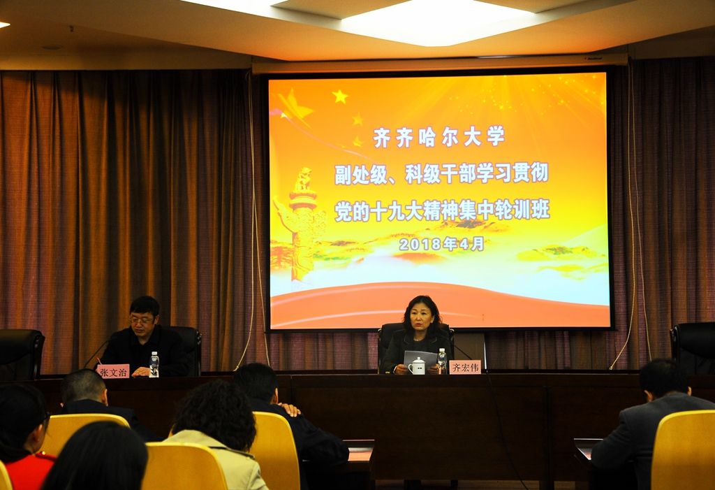 按照《中共黑龍江省委組織部關于做好縣處級以上領導干部學習貫徹黨的十九大精神集中輪訓工作的通知》(黑組發(fā)〔2017〕9號)和《關于開展高校處級干部學習貫徹黨的十九大精神集中輪訓工作的通知》(黑高工委函〔2017〕29號)要求,經(jīng)學校黨委研究決定,4月23日下午,全校副處級、科級干部學習貫徹黨的十九大精神集中輪訓班在德潤大廈四樓會議室舉辦。校黨委副書記齊宏偉出席開班式并講話,開班式由黨委組織部臨時負責人張文治主持。