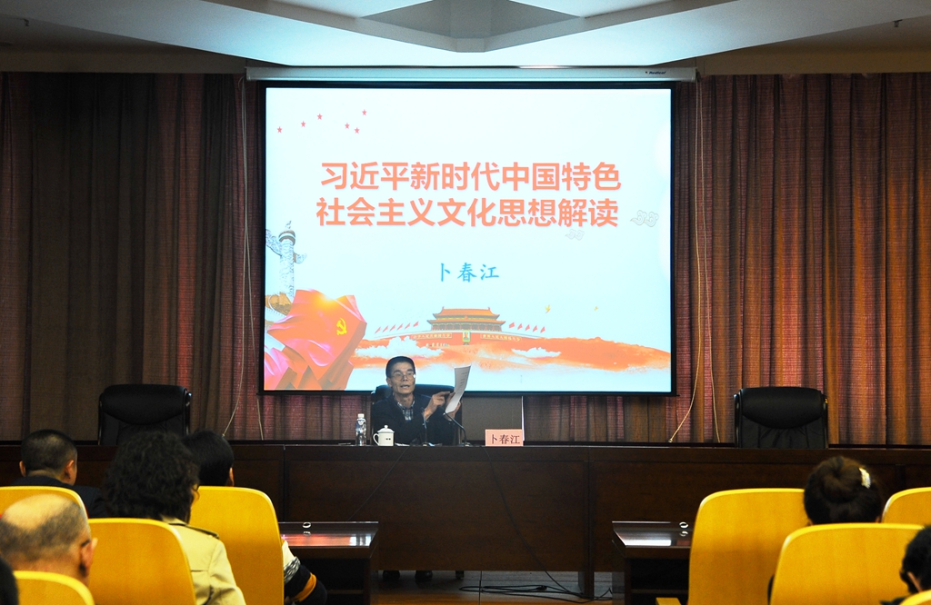 24日下午,哲學與法學學院黨委書記卜春江以《習近平新時代中國特色社會主義文化思想解讀》為題,為輪訓班全體學員帶來了一場專題講座,詳盡闡述了習近平新時代中國特色社會主義文化思想的歷史定位和重大意義、習近平新時代中國特色社會主義文化思想的基本內(nèi)容、堅持以習近平新時代中國特色社會主義文化思想為指導,建設社會主義文化強國等三個方面的內(nèi)容。