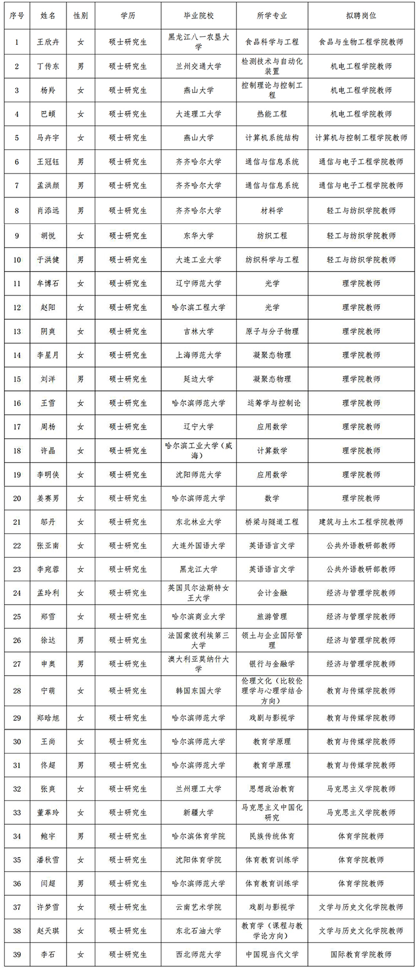 齊齊哈爾大學2019年上半年公開招聘擬聘用人員公示(二)