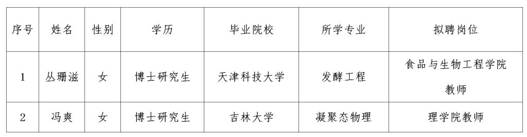 按照《黑龍江省事業(yè)單位公開招聘工作人員實施細則》的規(guī)定,根據《齊齊哈爾大學2019年上半年公開招聘人員公告》明確的原則、程序和方法,現將擬聘用人員予以公示。如對公示人員有異議,可在公示期內反映,反映情況和問題必須實事求是,應簽署或告知真實姓名、工作單位和聯系方式;對線索不清的匿名信和匿名電話,公示期間不予受理。