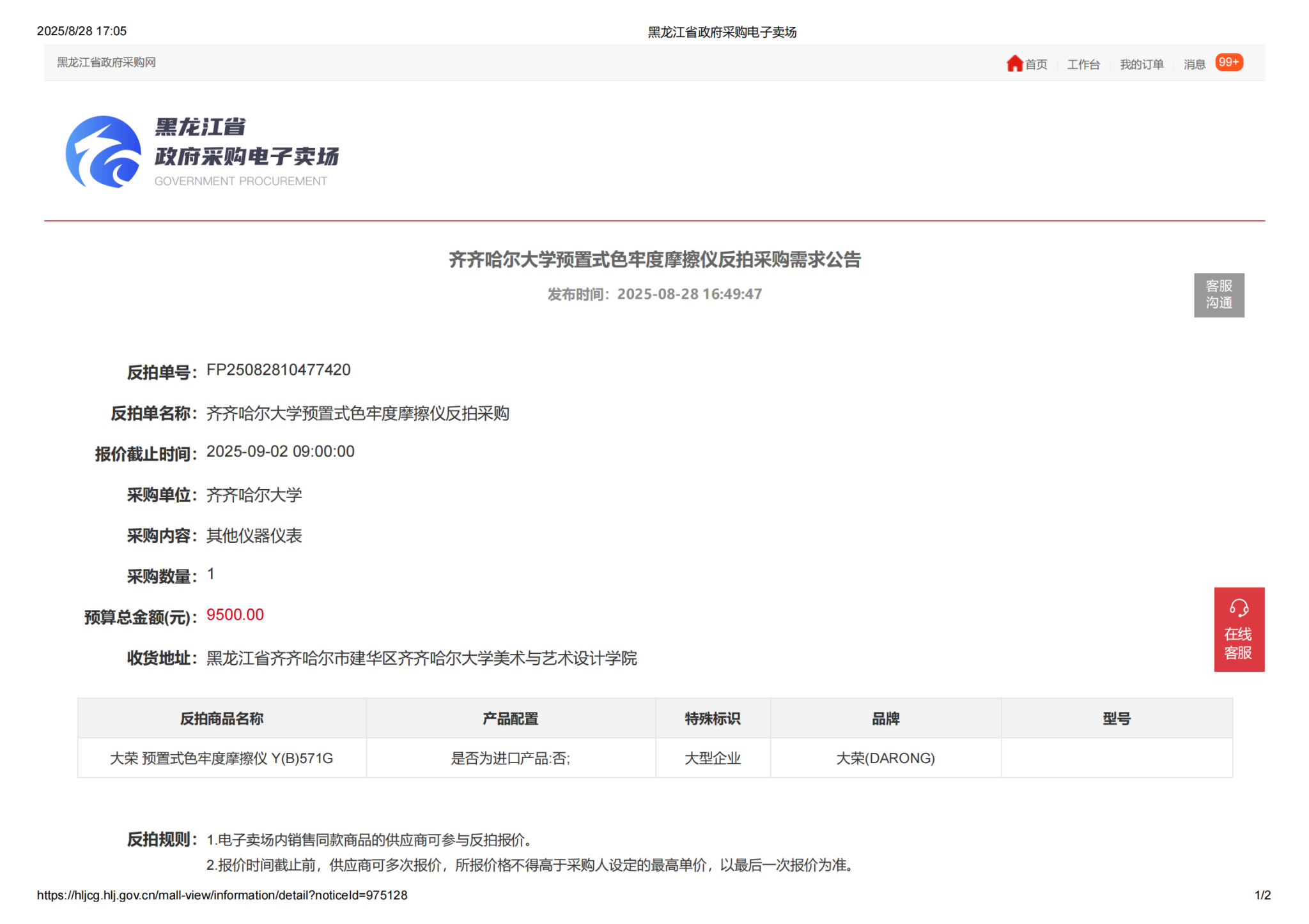 上一條:齊齊哈爾大學(xué)耐洗色牢度試驗機反拍采購需求公告(轉(zhuǎn)自黑龍江省政府采購網(wǎng))
