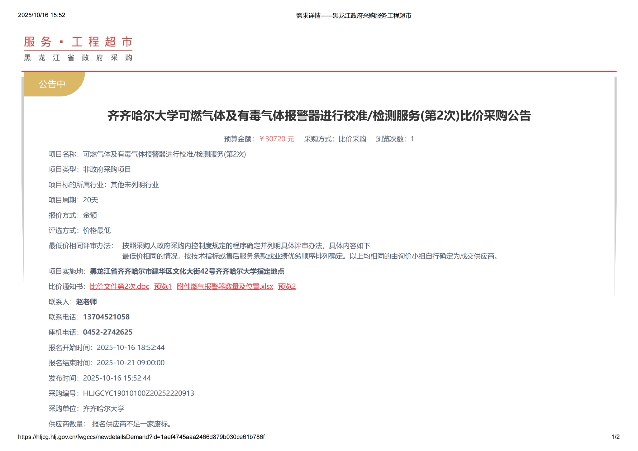 下一條:齊齊哈爾大學(xué)可燃?xì)怏w及有毒氣體報(bào)警器進(jìn)行校準(zhǔn)檢測服務(wù)終止公告(轉(zhuǎn)自黑龍江省政府采購網(wǎng))