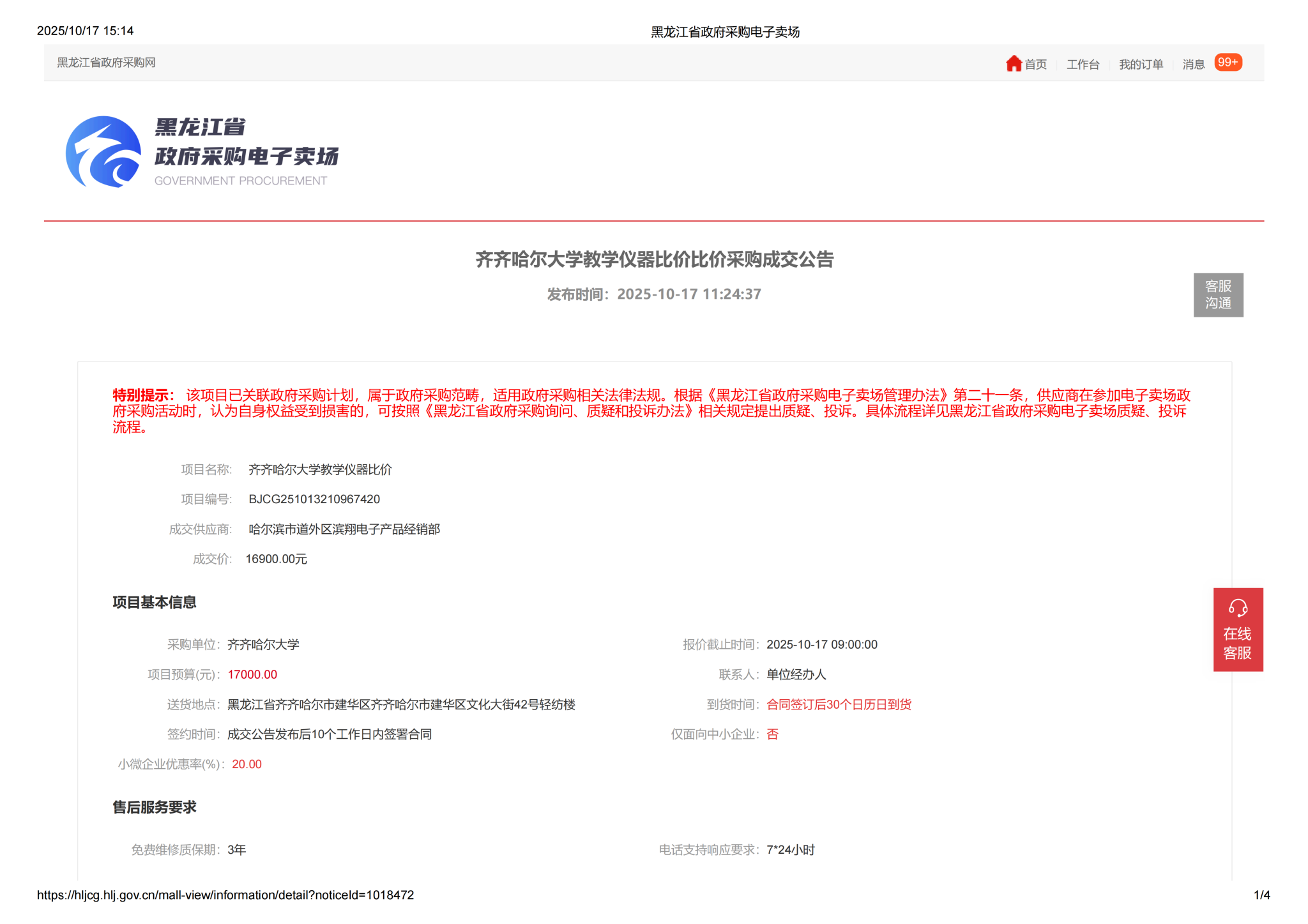 下一條:齊齊哈爾大學(xué)可燃?xì)怏w及有毒氣體報警器進行校準(zhǔn)檢測服務(wù)(第2次)比價采購公告(轉(zhuǎn)自黑龍江省政府采購網(wǎng))