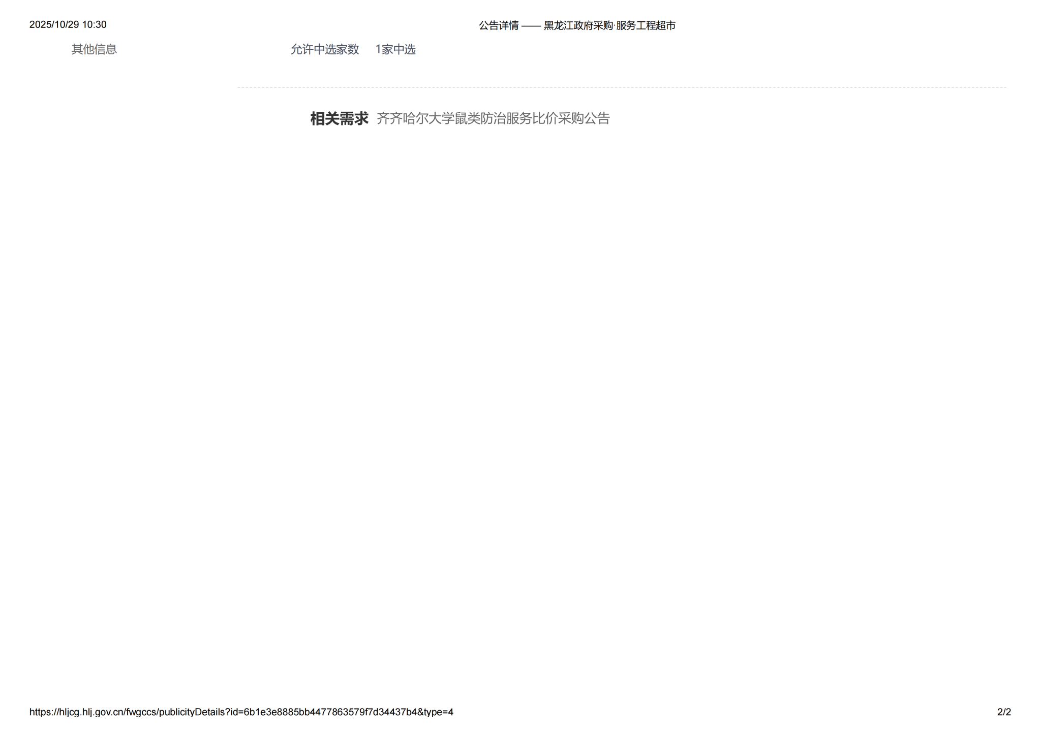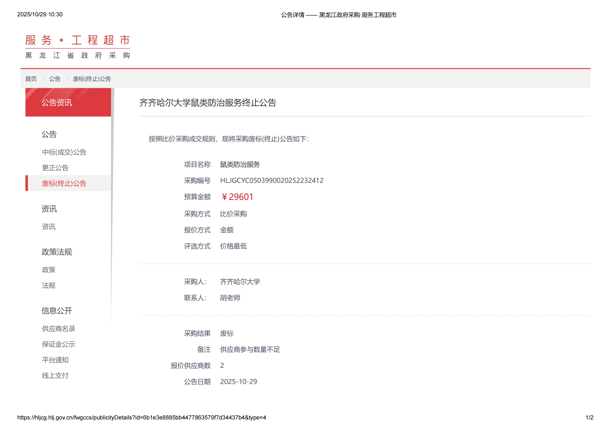 上一條:齊齊哈爾大學(xué)鼠類防治服務(wù)(第2次)比價(jià)采購公告(轉(zhuǎn)自黑龍江省政府采購網(wǎng))