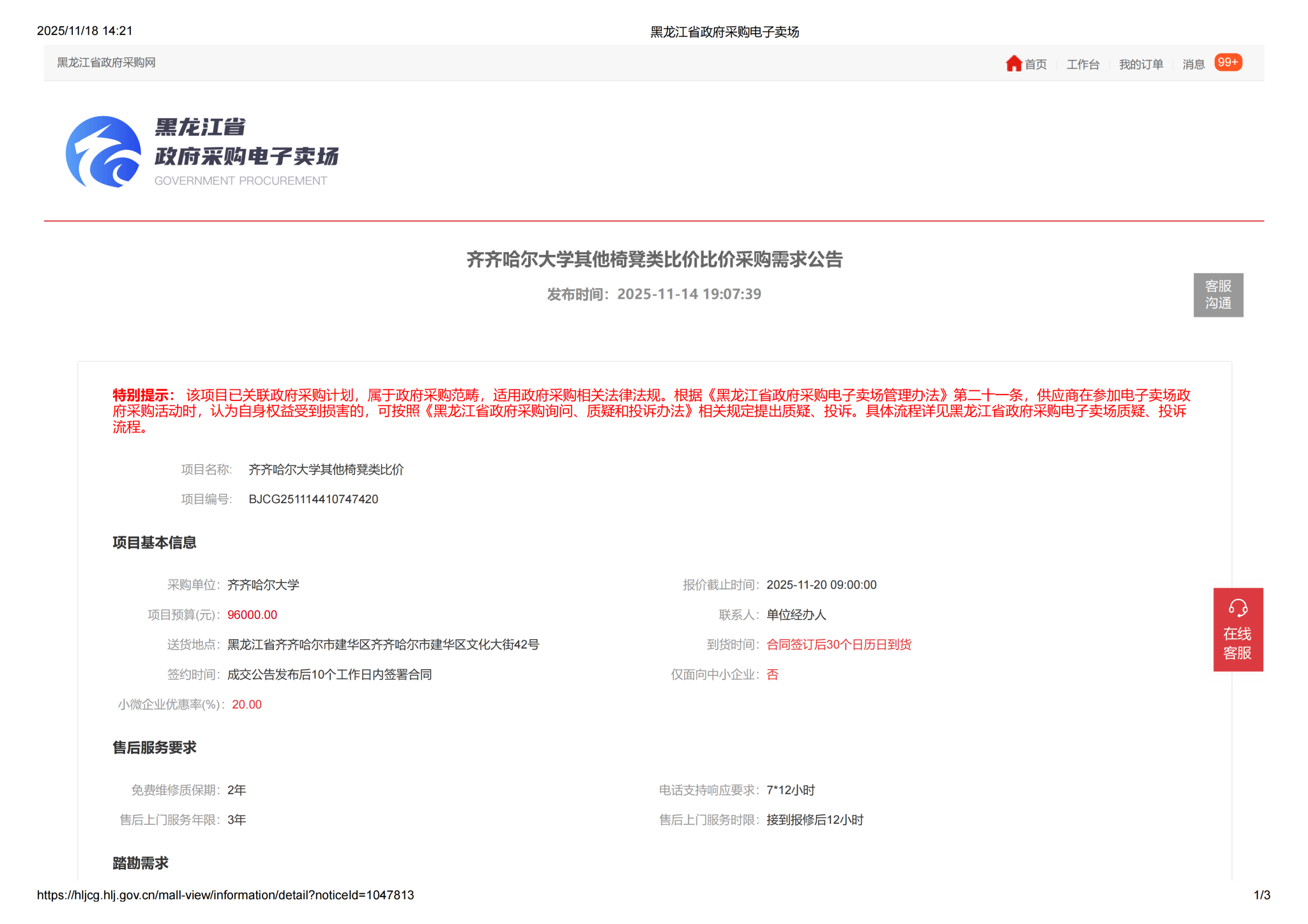 下一條:齊齊哈爾大學(xué)其他椅凳類比價(jià)采購(gòu)需求公告(轉(zhuǎn)自黑龍江省政府采購(gòu)網(wǎng))
