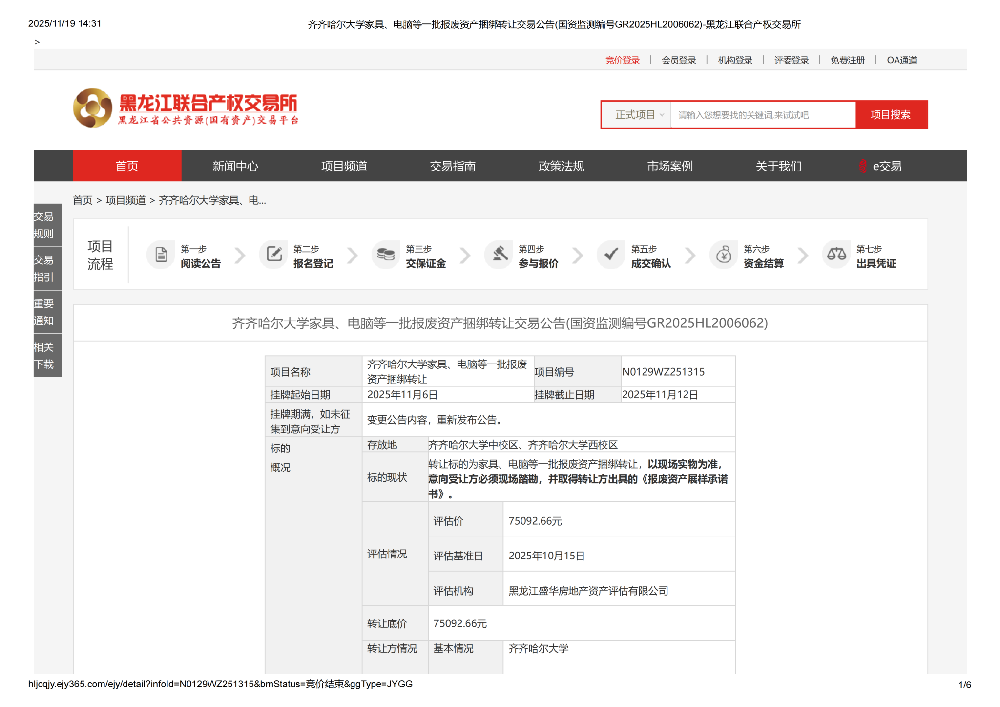 上一條:齊齊哈爾大學(xué)其他椅凳類比價(jià)(二次)采購成交公告(轉(zhuǎn)自黑龍江省政府采購網(wǎng))
