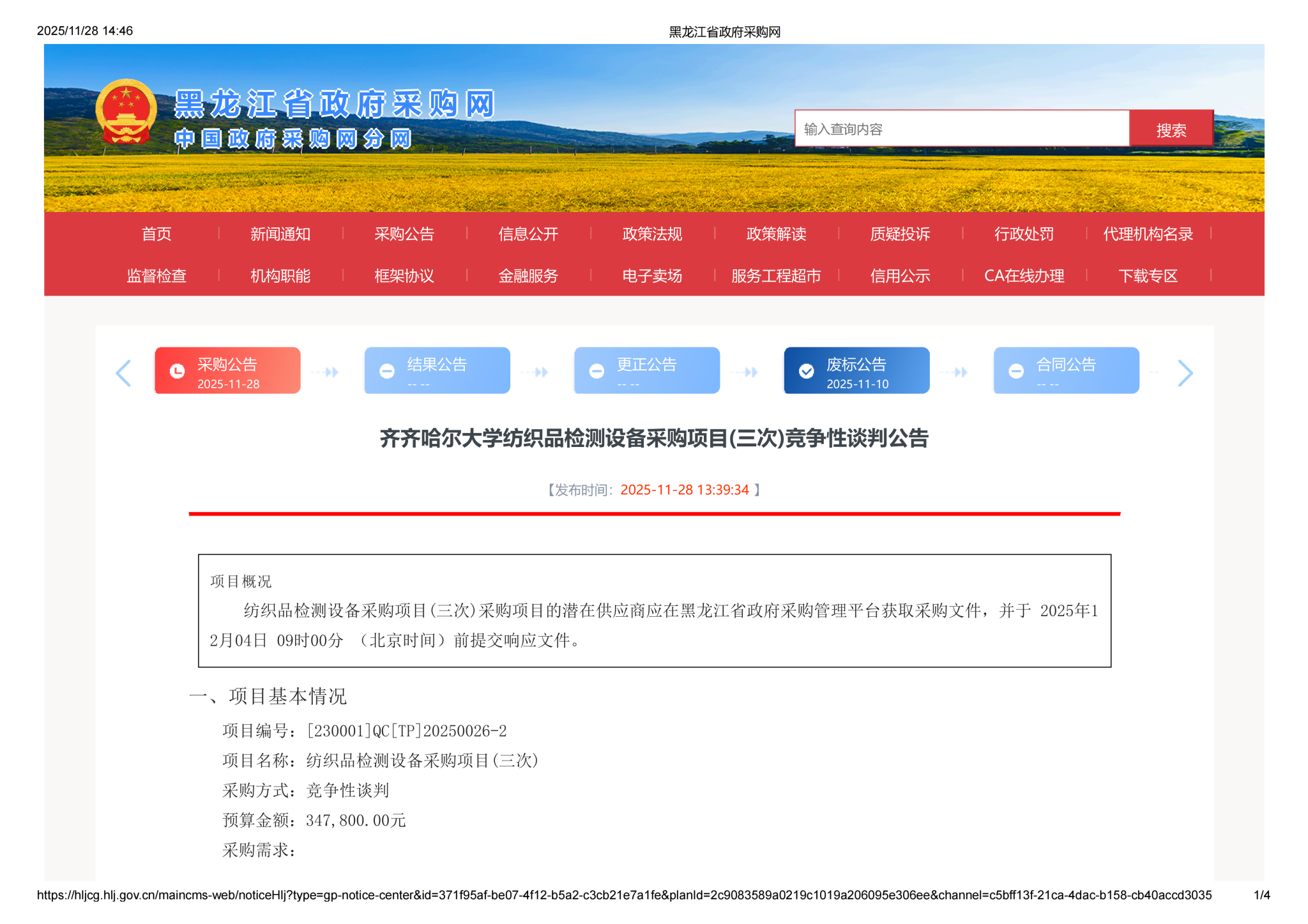 上一條:齊齊哈爾大學(xué)紡織品檢測設(shè)備采購項目(三次)中標(biāo)(成交)結(jié)果公告(轉(zhuǎn)自黑龍江省政府采購網(wǎng))