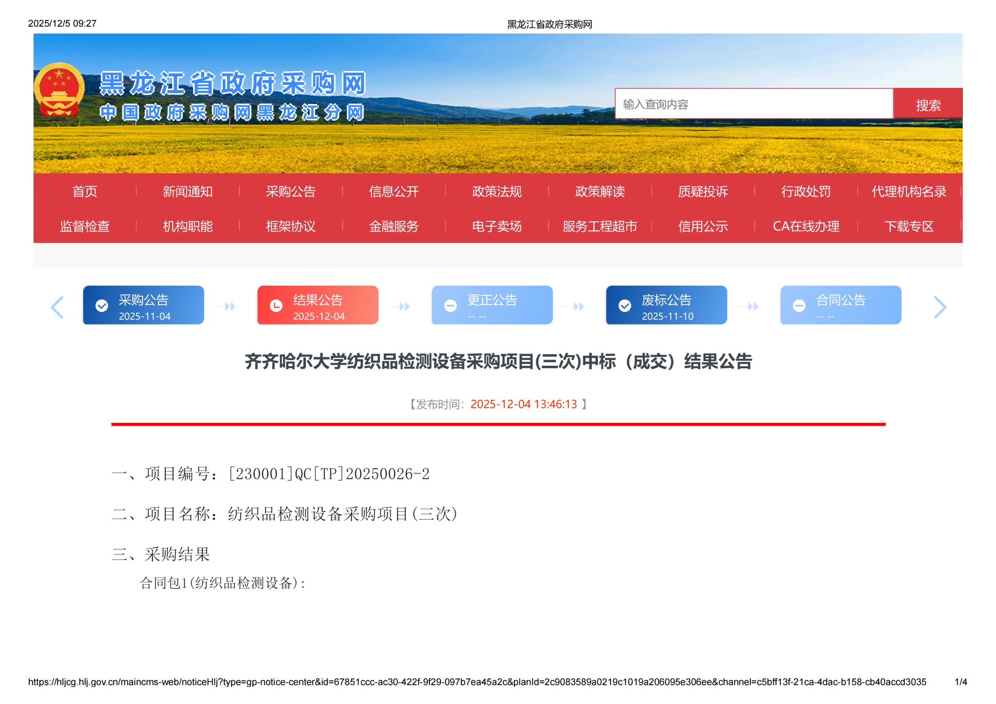 下一條:齊齊哈爾大學(xué)紡織品檢測設(shè)備采購項目(三次)競爭性談判公告(轉(zhuǎn)自黑龍江省政府采購網(wǎng))