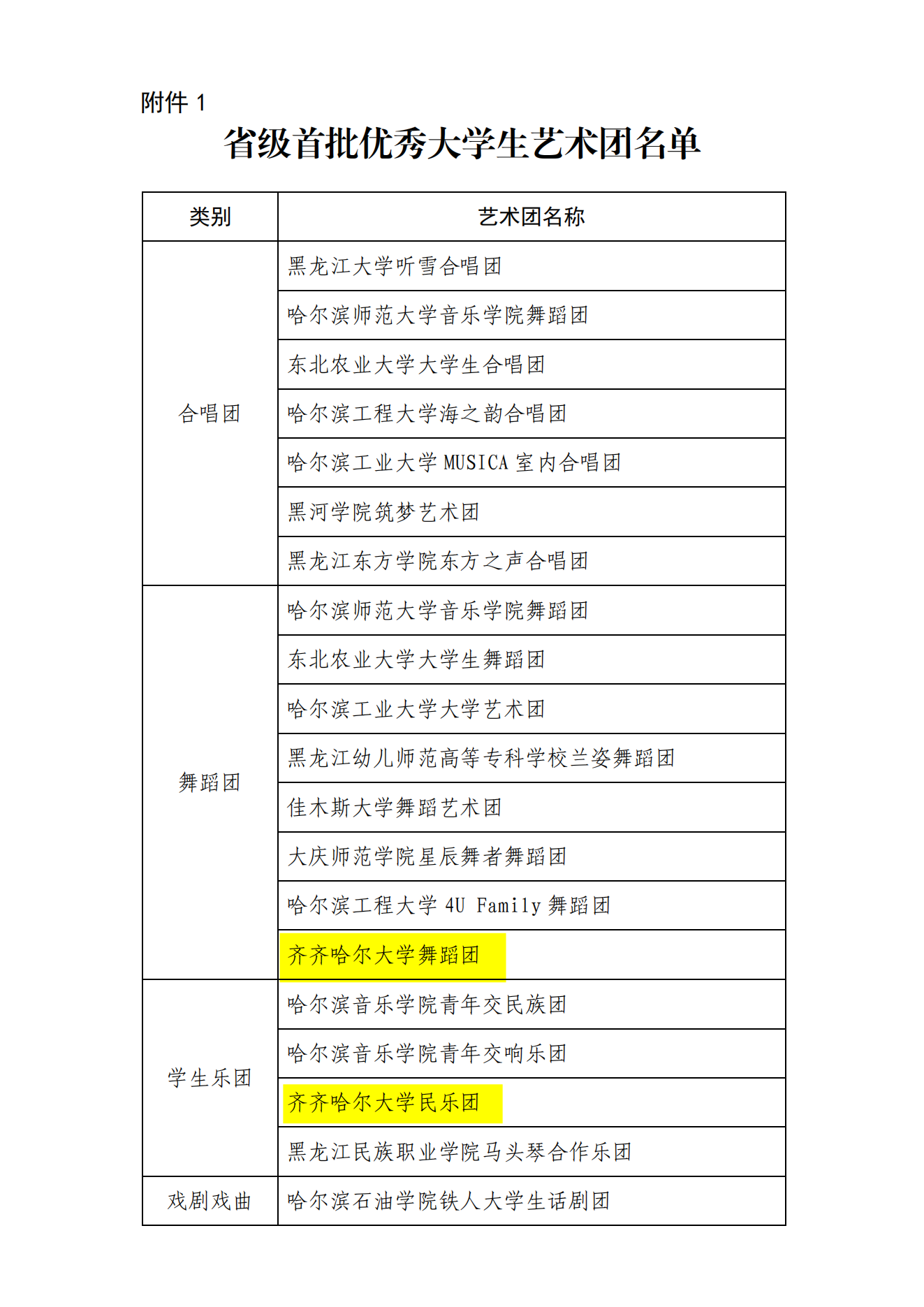 發(fā)布日期:2025-01-21 點(diǎn)擊量:為深入貫徹《教育部關(guān)于全面實(shí)施學(xué)校美育浸潤行動(dòng)的通知》(教體藝〔2023〕5號(hào))及《黑龍江省全面實(shí)施學(xué)校美育浸潤行動(dòng)工作方案》(黑教發(fā)〔2024〕22號(hào))的決策部署,打造特色美育品牌、繁榮校園文化、豐富第二課堂、促進(jìn)學(xué)校育人成效,在黑龍江省教育廳舉辦的首批優(yōu)秀學(xué)生藝術(shù)團(tuán)遴選活動(dòng)中,我校舞蹈團(tuán)和民樂團(tuán)兩個(gè)團(tuán)隊(duì)成功入選全省首批優(yōu)秀學(xué)生藝術(shù)團(tuán)。(全省共入選合唱團(tuán)、舞蹈團(tuán)、學(xué)生樂團(tuán)、戲劇戲曲四類20個(gè)團(tuán)隊(duì))
