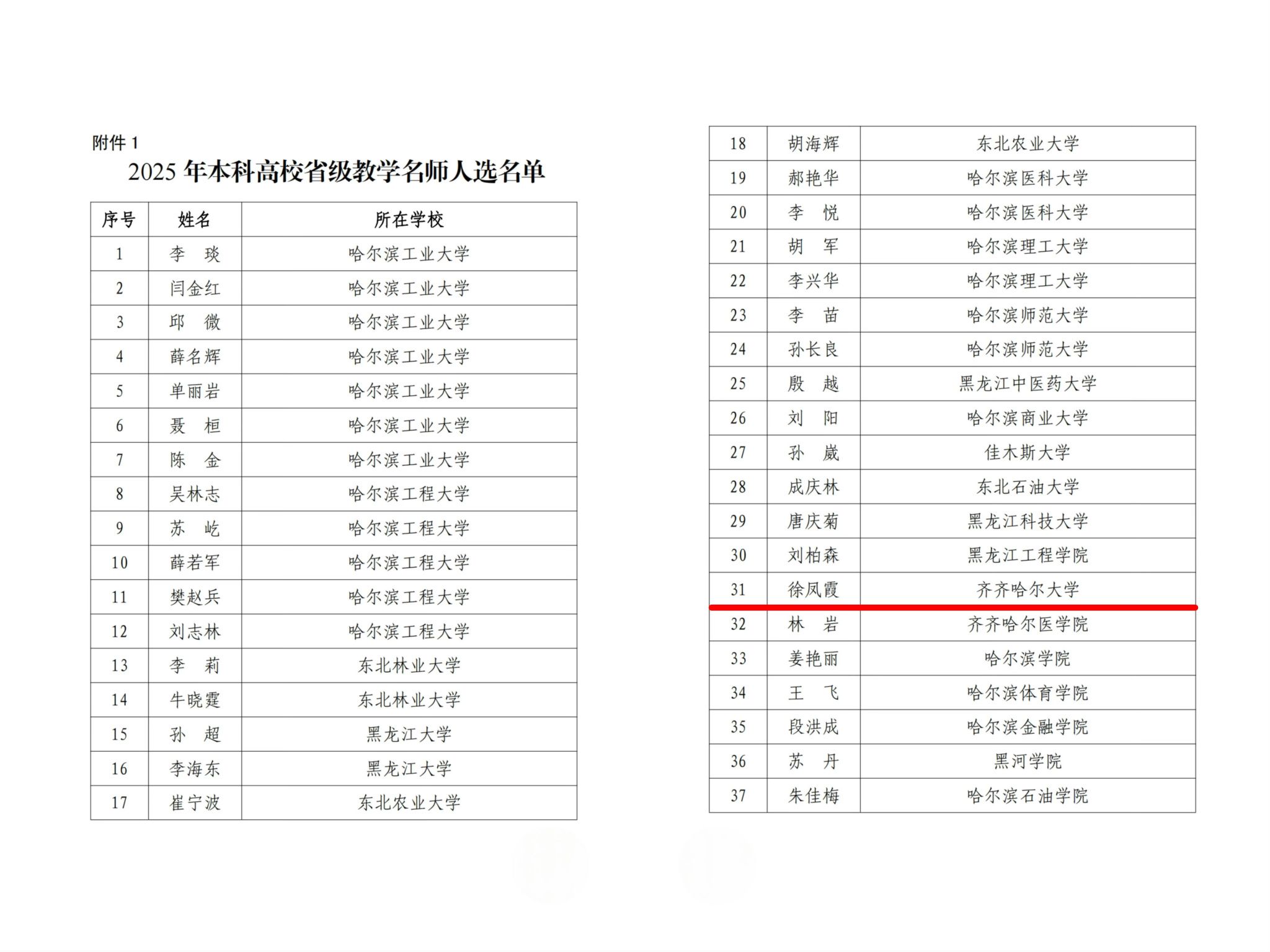 近期,黑龍江省教育廳發(fā)布了《關(guān)于公布2025 年黑龍江省級(jí)教學(xué)名師的通知》(黑教發(fā)〔2025〕31號(hào)),我校教師徐鳳霞教授獲評(píng)2025年黑龍江省本科高校省級(jí)教學(xué)名師。本次“省級(jí)教學(xué)名師”榮譽(yù)的獲得,是我校在師資隊(duì)伍建設(shè)、教育教學(xué)水平建設(shè)方面取得的又一重要成果。