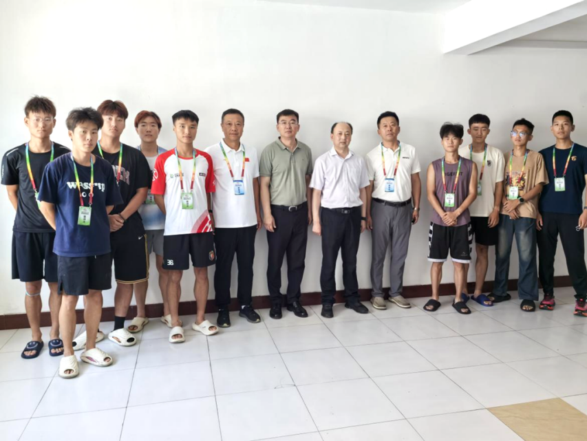 范鐵明一行來到代表團(tuán)駐地,詳細(xì)詢問隊(duì)員們的住宿、餐飲、訓(xùn)練恢復(fù)及賽事安排等情況,對大家展現(xiàn)出的飽滿精神和昂揚(yáng)斗志表示高度贊賞,并與教練員、運(yùn)動員們親切交談。他寄語參賽師生:“弘揚(yáng)體育精神,嚴(yán)守賽風(fēng)賽紀(jì),堅(jiān)定必勝信心,賽出齊大風(fēng)采!”叮囑參賽隊(duì)員們,務(wù)必做好防曬降溫等自我防護(hù),要求體育學(xué)院全力做好后方支援,解決運(yùn)動員后顧之憂,做代表團(tuán)的堅(jiān)強(qiáng)后盾。