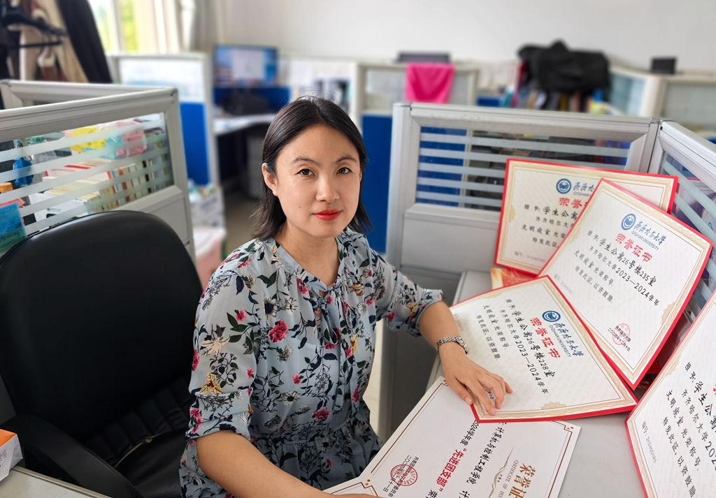 姜艷麗將“全心全意為人民服務”的宗旨轉(zhuǎn)化為對學生無微不至的守護。她創(chuàng)新實施“黨員聯(lián)系寢室”制度,織就關愛網(wǎng)絡;新生報到季,她在迎新現(xiàn)場連續(xù)奮戰(zhàn);學生突發(fā)疾病,她深夜護送至醫(yī)院。她連續(xù)四年組織“三下鄉(xiāng)”社會實踐,2023年學生馮仕睿榮獲攀枝花市優(yōu)秀大學生團干部稱號,正是實踐育人的生動體現(xiàn);學生周正兩獲省優(yōu)秀志愿者金獎銀獎,這些榮譽的背后,無不包含著姜艷麗的全程陪伴。