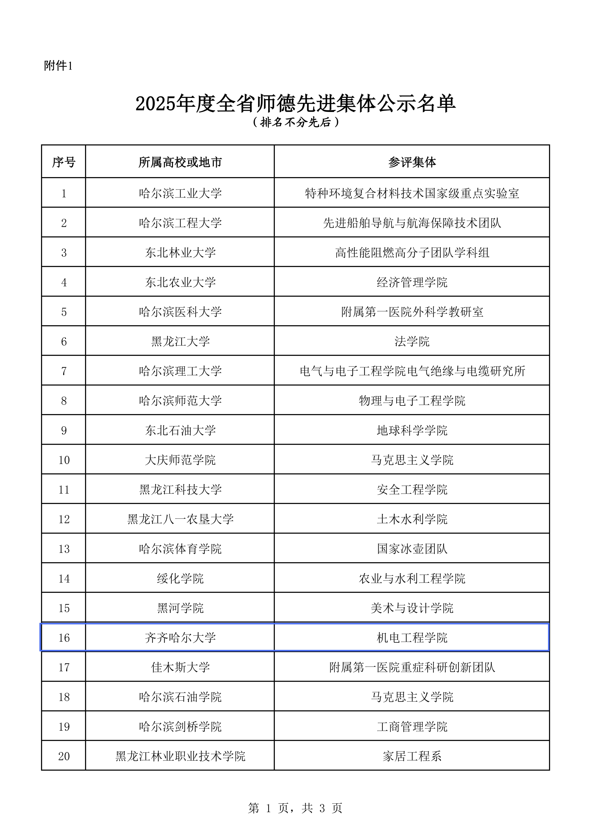 發(fā)布日期:2025-10-31 點(diǎn)擊量:近日,黑龍江省教育廳“2025年度全省教育系統(tǒng)師德建設(shè)先進(jìn)集體與師德先進(jìn)個(gè)人”評(píng)選結(jié)果公示,共評(píng)選出師德先進(jìn)集體66個(gè)、師德先進(jìn)個(gè)人180人。我校機(jī)電工程學(xué)院,榮獲“全省師德建設(shè)先進(jìn)集體”稱號(hào),外國語學(xué)院教師王楠獲評(píng)“全省師德先進(jìn)個(gè)人”稱號(hào)。