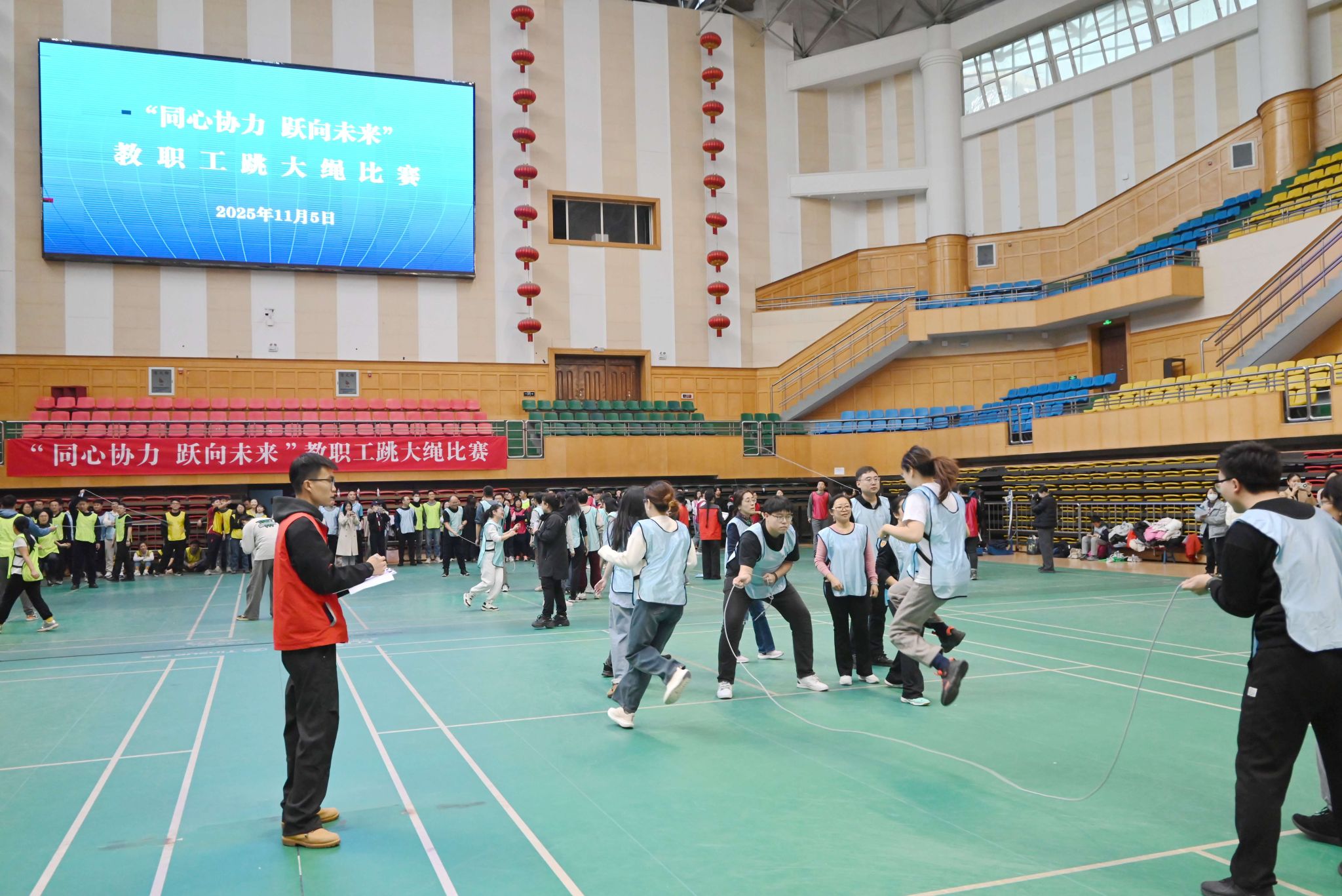 11月5日下午,西區(qū)體育館內(nèi)掌聲雷動、歡聲陣陣,由校工會主辦的“同心協(xié)力 躍向未來”2025年教職工跳大繩比賽在這里火熱舉行。本次比賽共吸引了全校19個基層工會的21支代表隊(duì)參賽,各參賽隊(duì)伍在賽場上展現(xiàn)了卓越的團(tuán)隊(duì)協(xié)作精神和昂揚(yáng)向上的風(fēng)貌。