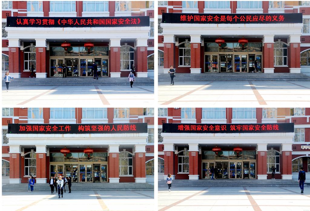 為響應(yīng)省、市安全部門的號召、提高我校師生的國家安全和反奸防諜意識,4月14日上午,在保衛(wèi)處(武裝部)的精心組織下,我校全民國家安全教育日宣傳活動在學(xué)校西區(qū)主樓一樓陽光大廳舉行。武裝部部長、保衛(wèi)處處長吳剛,武裝部政委、保衛(wèi)處副處長付建成等相關(guān)部門工作人員和師生參加了本次全民國家安全教育日的系列宣傳活動。在活動現(xiàn)場,工作人員向師生介紹了相關(guān)法律知識,并展出相關(guān)知識宣傳展板11塊,利用LED屏等媒體播放宣傳標(biāo)語,對習(xí)近平總書記關(guān)于國家安全工作的重要論述以及《國家安全法》、《反間諜法》進行了廣泛宣傳。