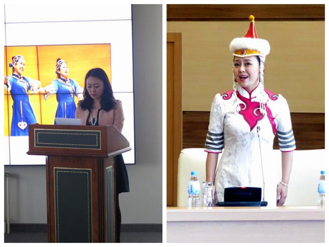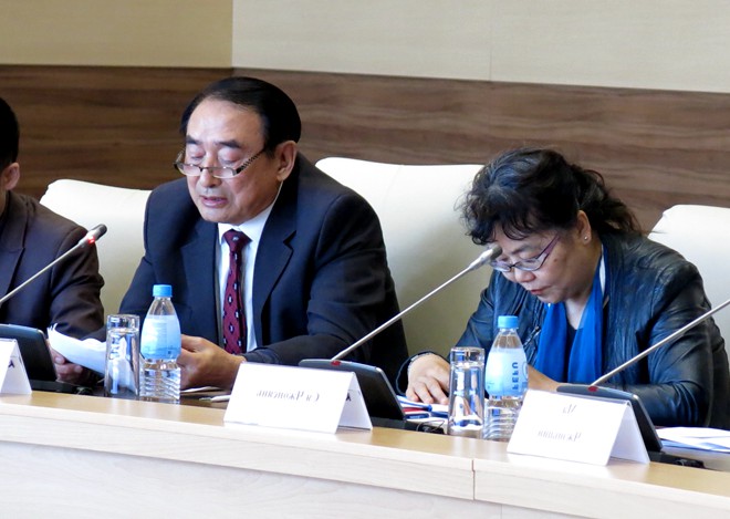 朱艷彬教授結(jié)合發(fā)言內(nèi)容演唱了一首達(dá)斡爾族最具代表性的傳統(tǒng)民歌《心上人》,贏得了與會人員高度贊譽(yù)。與會期間,李延齡教授應(yīng)邀會見了我國駐海參崴總領(lǐng)事閆文濱,就旅俄華人研究問題交換了意見。