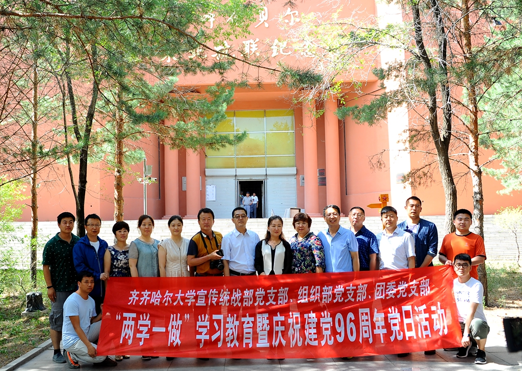 為深入推進(jìn)“兩學(xué)一做”學(xué)習(xí)教育常態(tài)化制度化,進(jìn)一步增強(qiáng)廣大黨員干部的黨性修養(yǎng),大興“五個(gè)好作風(fēng)”,爭(zhēng)做“四個(gè)合格”好黨員,在黨的96華誕到來之際,7月1—2日,在校黨委副書記齊宏偉的帶領(lǐng)下,機(jī)關(guān)黨委宣傳統(tǒng)戰(zhàn)部黨支部、組織部黨支部和團(tuán)委黨支部的黨員一行16人,赴內(nèi)蒙古自治區(qū)阿榮旗和黑龍江省甘南縣開展“兩學(xué)一做”學(xué)習(xí)教育暨慶祝建黨96周年主題黨日活動(dòng)。